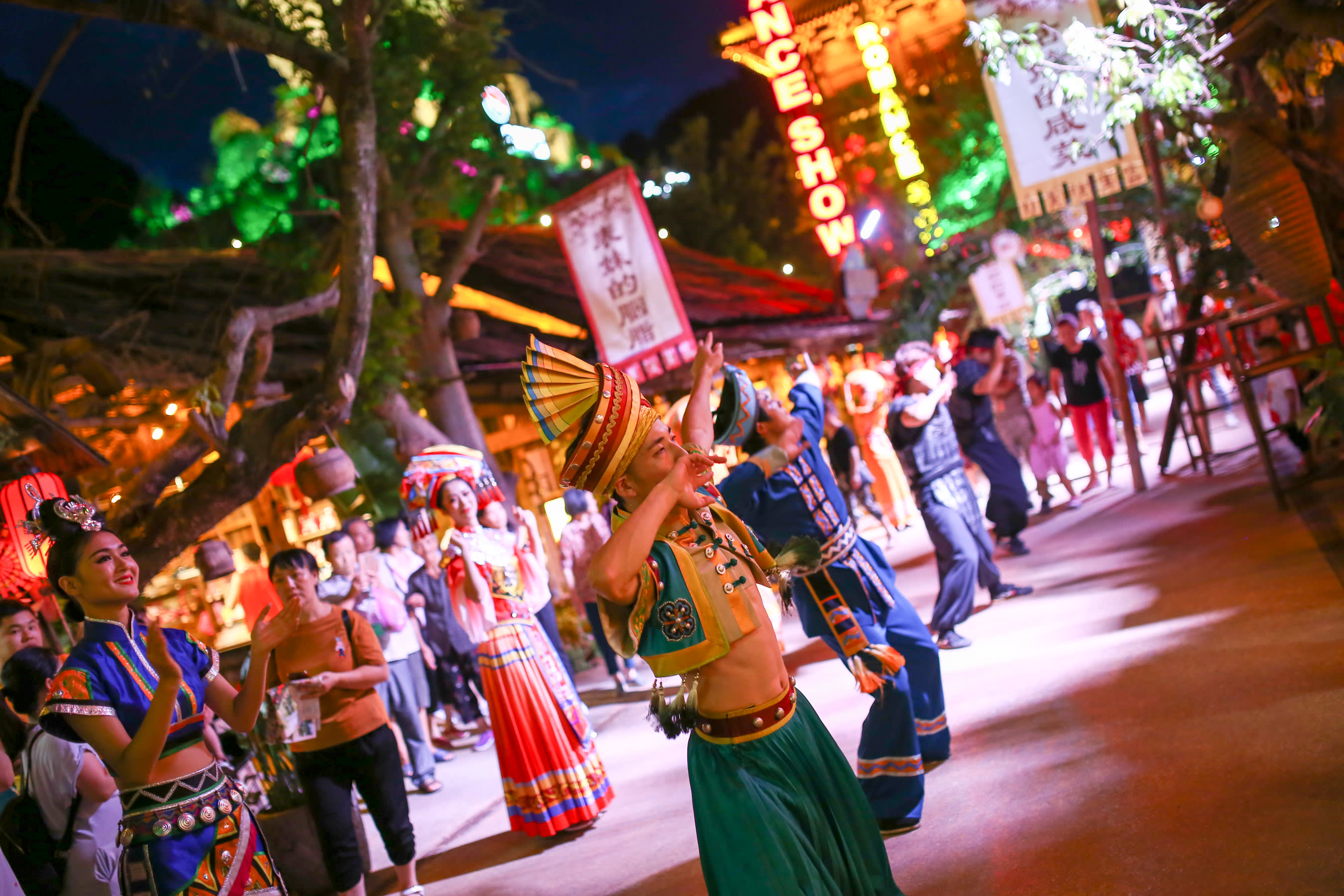 《민족 플래시몹 쇼(民族快闪秀)》, 《모토사 신랑 맞이(莫土司招婿)》, 《가선 영빈(歌仙迎宾)》, 《궈좡 광환(锅庄狂欢)》: 기타 공연 쇼로, 다채롭고 흥미진진하며 관광객에게 풍부한 볼거리를 선사합니다.