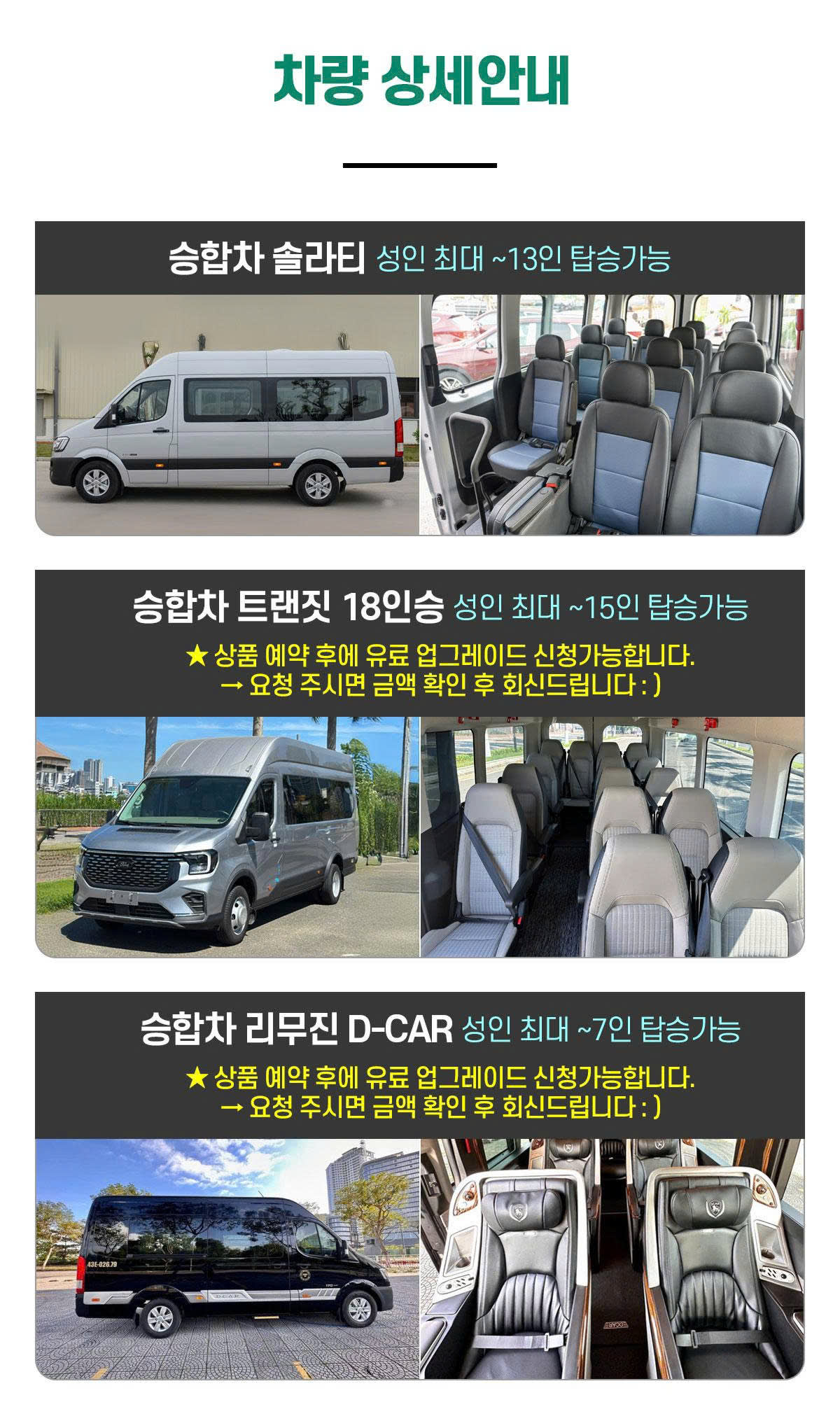 * 차량 업그레이드 비용은 최종 하차시, 차량 기사분에게 지불하시면됩니다.