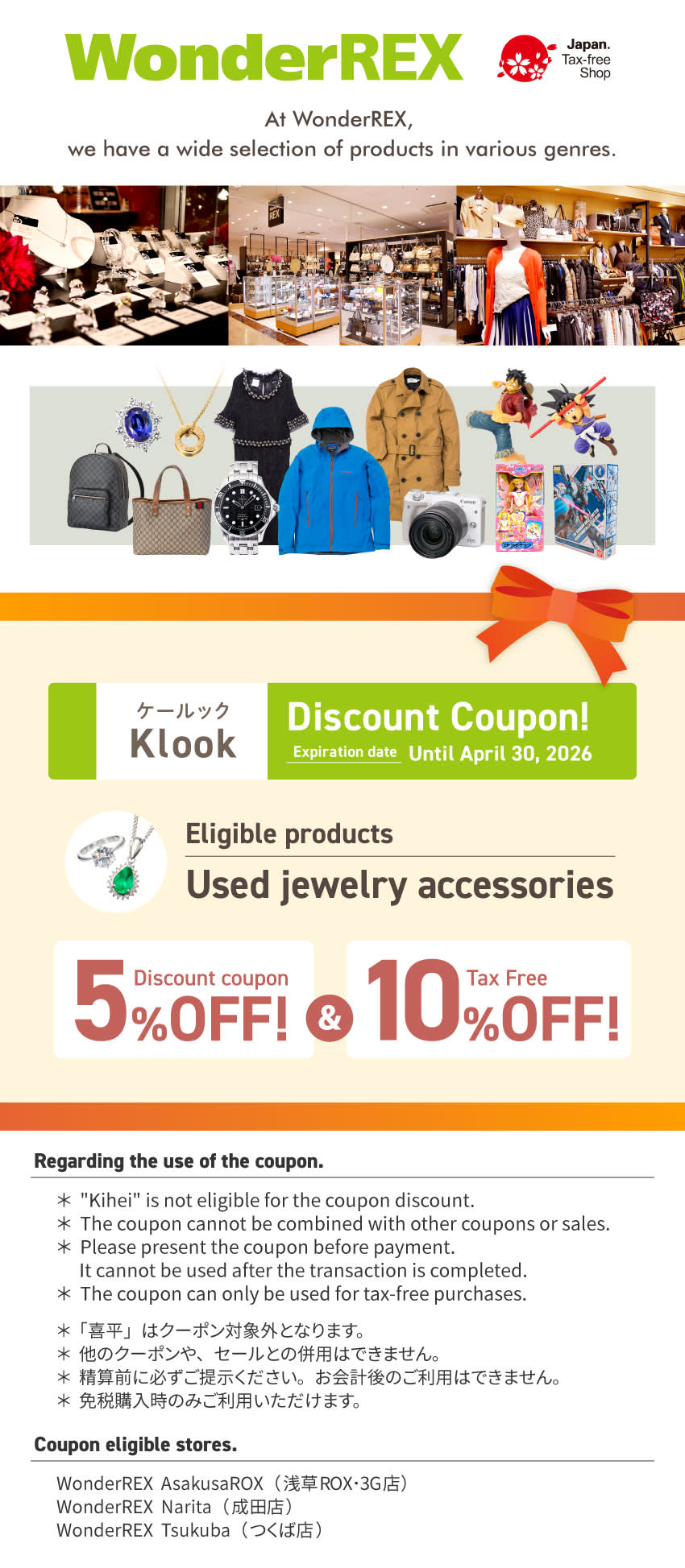 WonderREX는 다양한 품목을 구매하므로 매일 새로운 제품이 도착합니다. 간토 지방을 중심으로 전국 40개 이상의 매장과 20년 이상의 영업 실적을 보유한 WonderREX는 고객의 신뢰와 만족을 얻고 있습니다.