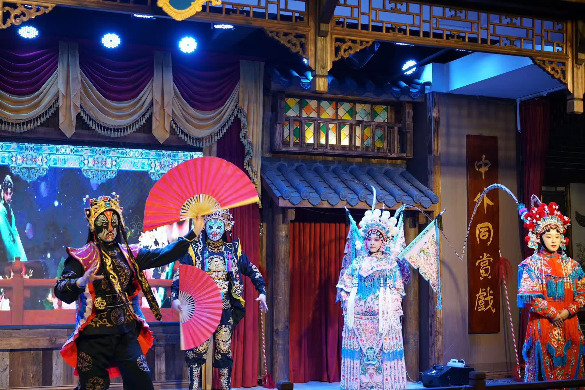* 사천극의 특별한 기술인 <변검 토화>는 사천극의 신비로운 기술로, 여러 명이 공연하며, 변화무쌍한 가면을 가까이에서 감상하고, 맹렬하게 뿜어져 나오는 뜨거운 불길을 감상할 수 있습니다.