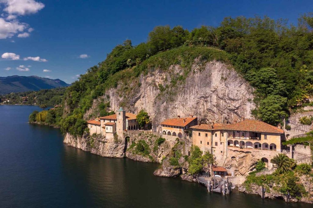 마조레 호수 바로 위에 돌출된 암벽에 붙어 있는 산타 카테리나 델 사소 암자를 방문하세요. 세 개의 다른 시대에 지어진 세 개의 예배당이 융합된 이 교회를 둘러보세요.