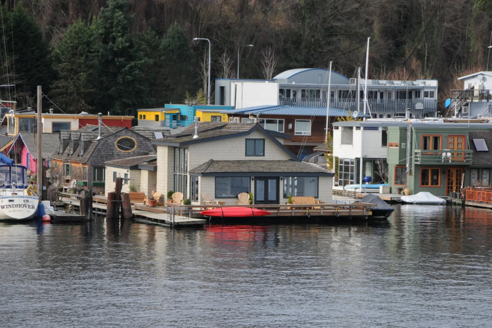 * 시애틀의 잠 못 이루는 밤에 등장했던 수상 가옥을 포함한 아름다운 하우스보트를 감상하세요.