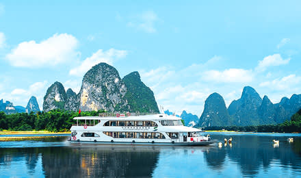 모반산 부두(磨盘山码头)에서 출발하는 약 4시간 동안의 이 수묵화 여행은 여러분을 漓江(리강)을 따라 내려가 陽朔(양숴) 龙头山码头(용두산 부두)에 도착하게 합니다. 유람선은 시적인 풍경이 펼쳐지는 漓江画廊(리강 화랑)을 지나가며, 맑은 강물은 양쪽 기이한 봉우리를 비추어 마치 한 폭의 수묵화 같습니다. 길을 따라 전설 속의 望夫石(망부석)을 보며, 다정한 부부의 감동적인 전설을 들어보세요. 제왕의 자금관을 닮은 冠岩(관암)을 지나며, 대자연의 놀라운 솜씨를 느껴보세요. 유람선이 楊堤(양제)를 지날 때, 산 모양이 양의 발굽과 흡사하여 이름 붙여진 이곳이 전형적인 카르스트 지형의 경관임을 알 수 있습니다. 배에서 간편한 식사를 즐기면서, 九马画山(구마화산)에서 아홉 마리의 신비로운 말을 찾아보는 것도 잊지 마세요. 마지막으로 유람선은 천년 고진 兴坪(싱핑)을 지나갑니다. 이곳은 20위안 지폐 배경의 촬영지일 뿐만 아니라, 가장 순수한 漓江(리강)의 풍정을 간직하고 있습니다. 漓江(리강) 삼성 유람선 + 银子岩(은자암) 패키지를 선택하신 경우, 龙头山码头(용두산 부두)에서 하선 후 银子岩(은자암)으로 모셔다 드리고, 银子岩(은자암) 관광 후 桂林(계림) 시내로 다시 모셔다 드립니다 (정해진 장소에서 해산하며, 호텔로 모셔다 드리지 못하는 점 양해 부탁드립니다!). 이 편안하고 쾌적한 삼성 유람선 여행은 漓江(리강)의 아름다운 산수를 만끽하면서, 최고의 여행 경험을 누릴 수 있게 해드릴 것입니다.