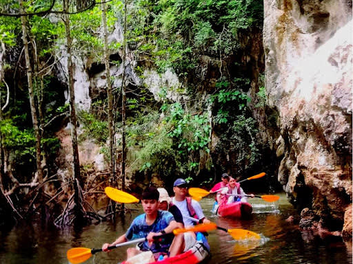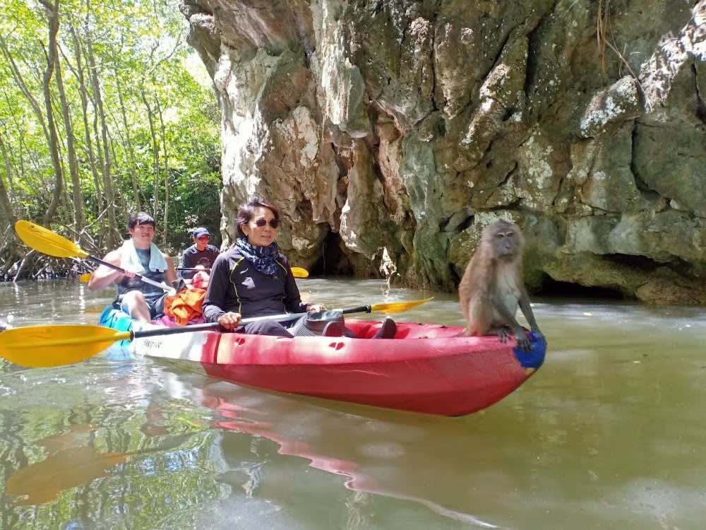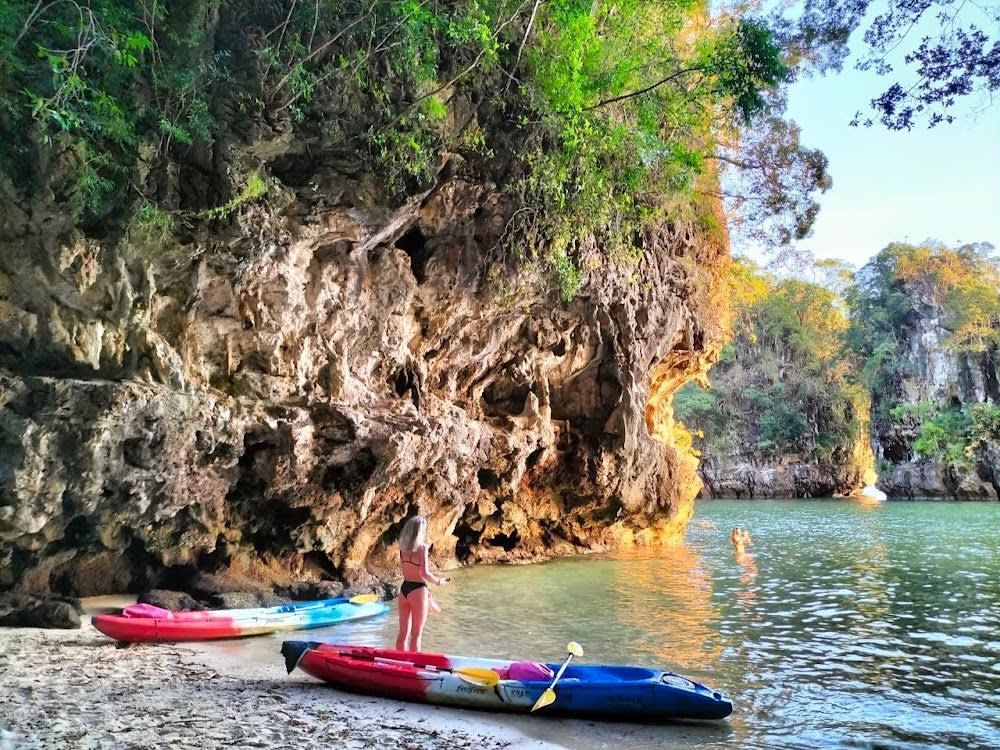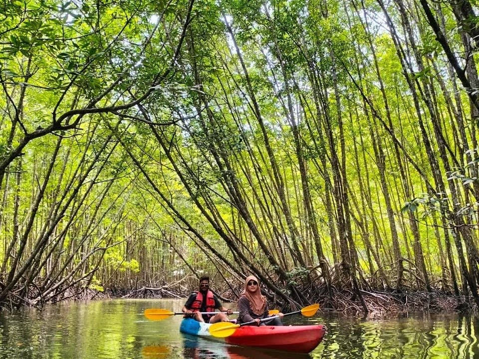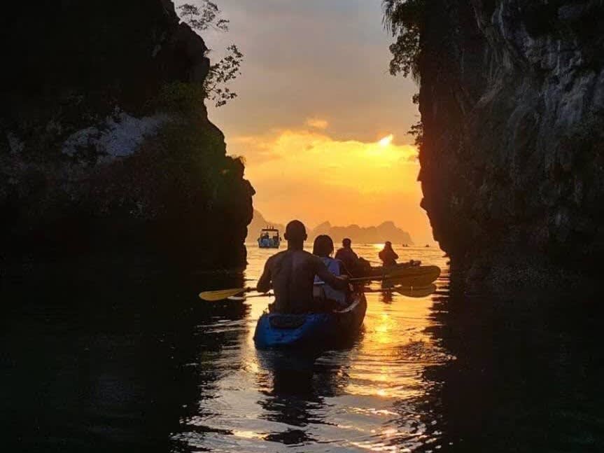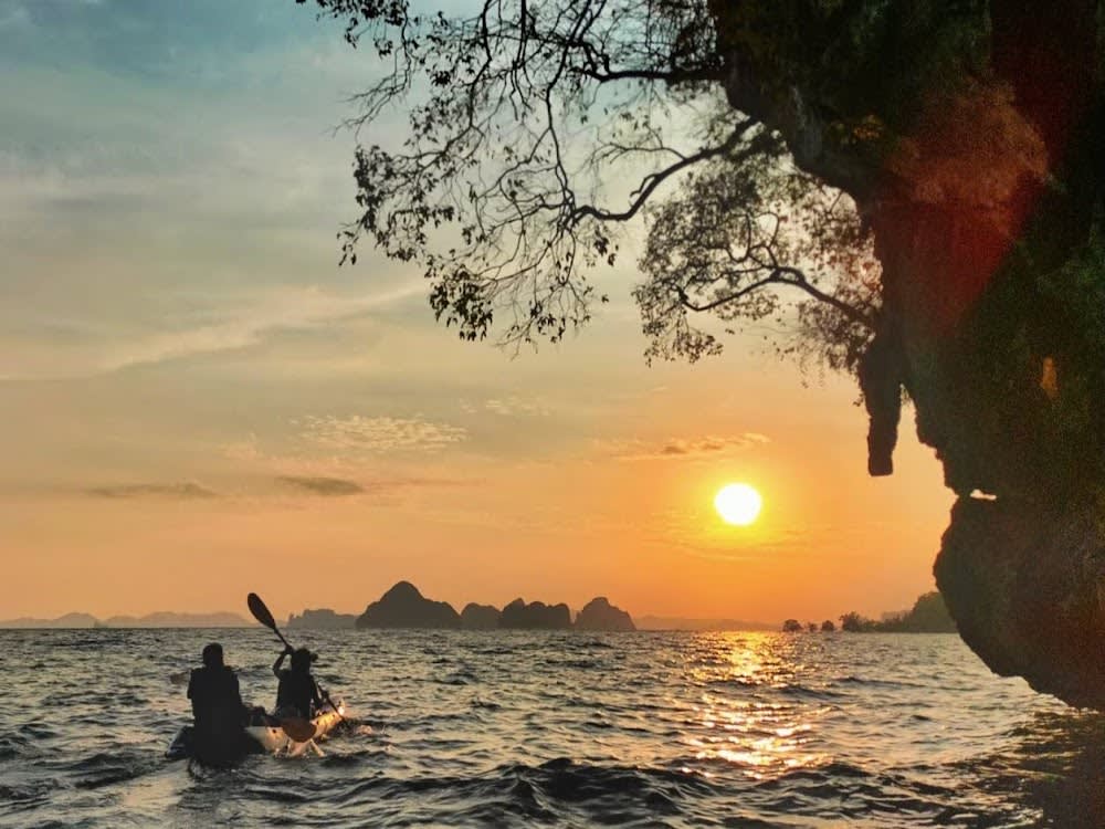 끄라비 아오 탈란의 아름다운 석호에서 카약을 타고 맹그로브, 좁은 수로, 석호 등 다양한 지형을 탐험해보세요. 숙련된 가이드와 함께 평화롭고 생물 다양성이 풍부한 만의 아름다움을 만끽한 후 해변 레스토랑에서 맛있는 바비큐 디너를 즐기며 안다만 해의 석양을 감상할 수 있습니다.