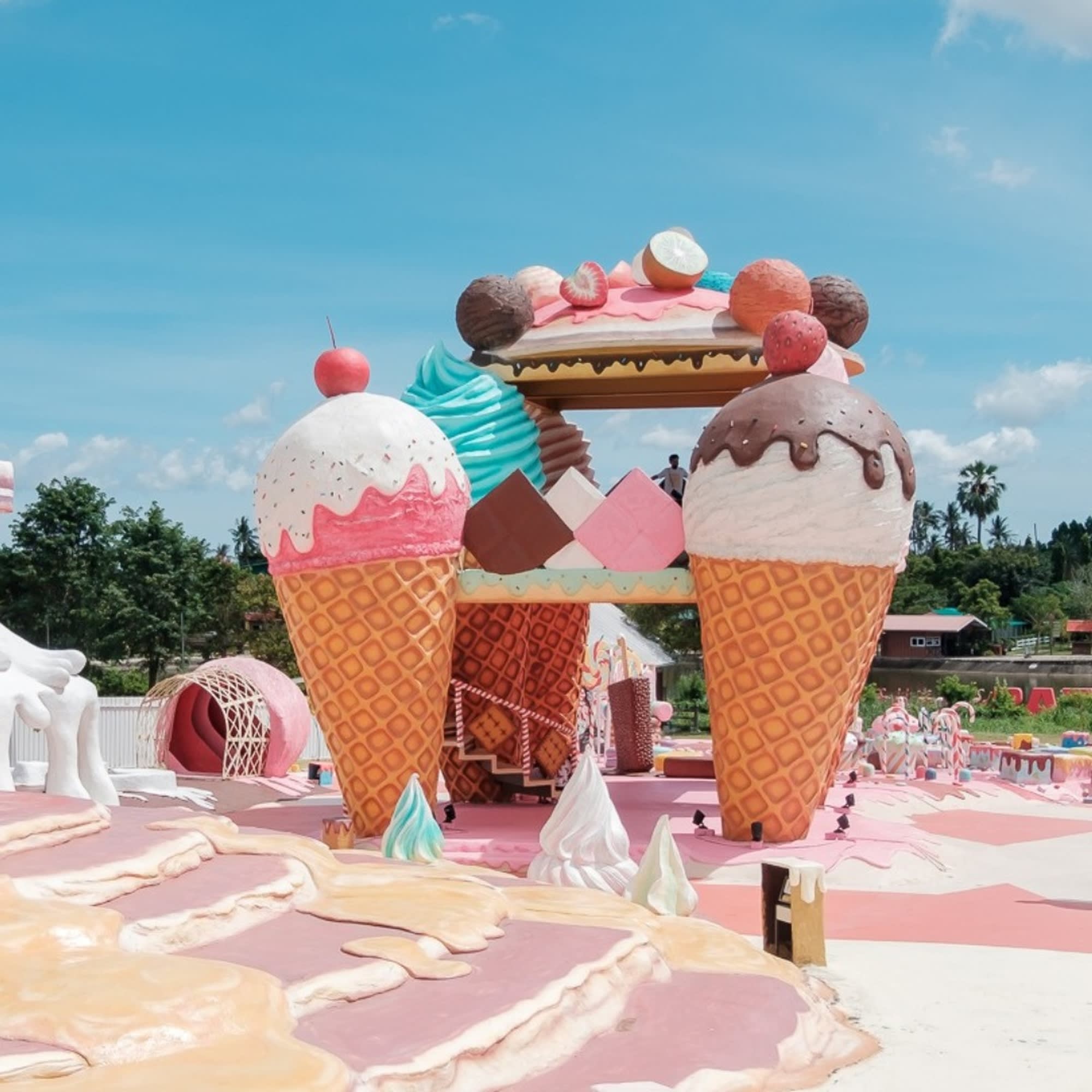 약 14라이(태국 단위) 이상의 넓은 부지에 캔디랜드를 콘셉트로 한 다채로운 조형물과 공간이 조성되어 있어