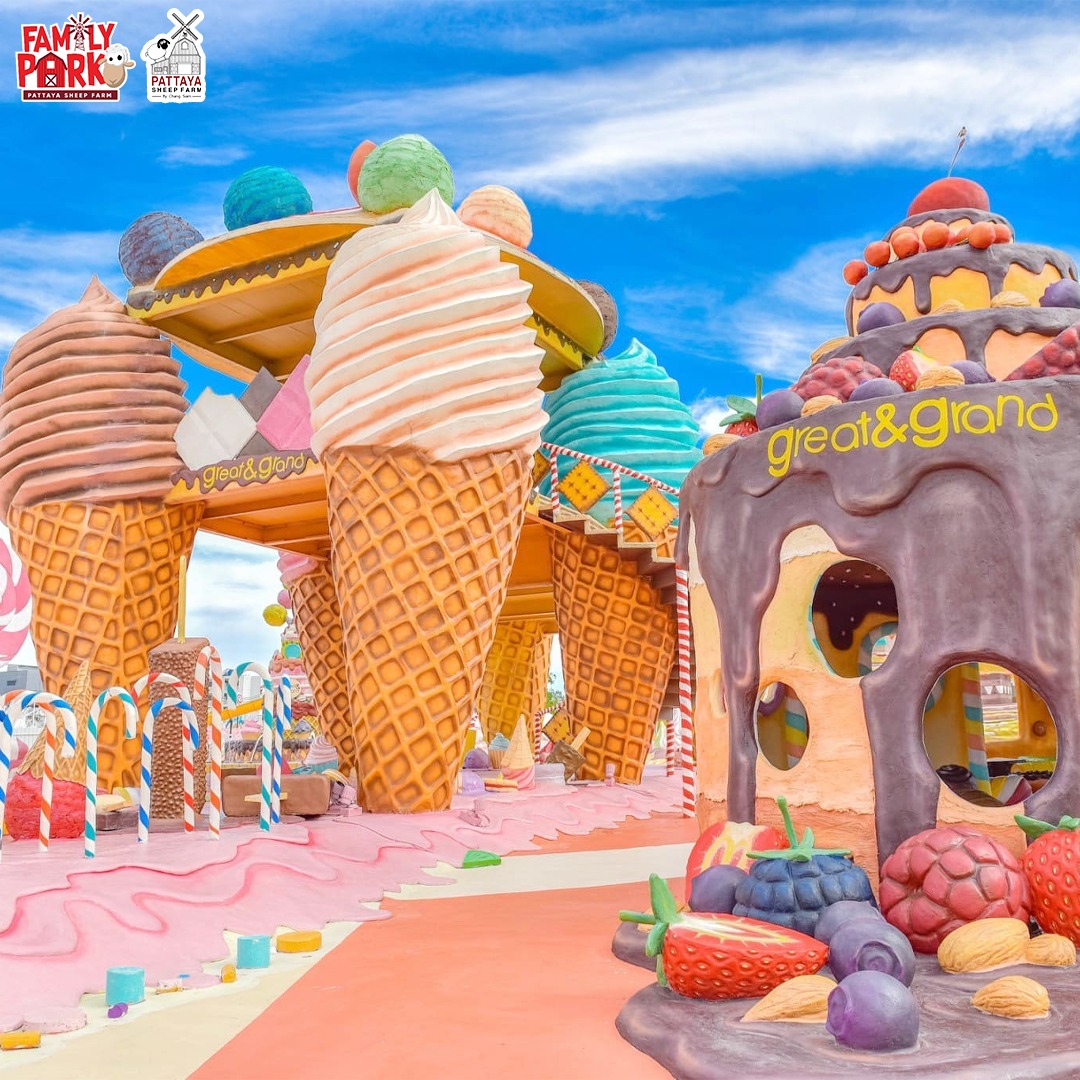 Great & Grand 스윗 데스티네션은 방콕에서 약 1시간 30분 거리에 위치한 태국 파타야 촌부리 주의 디저트 테마파크입니다.