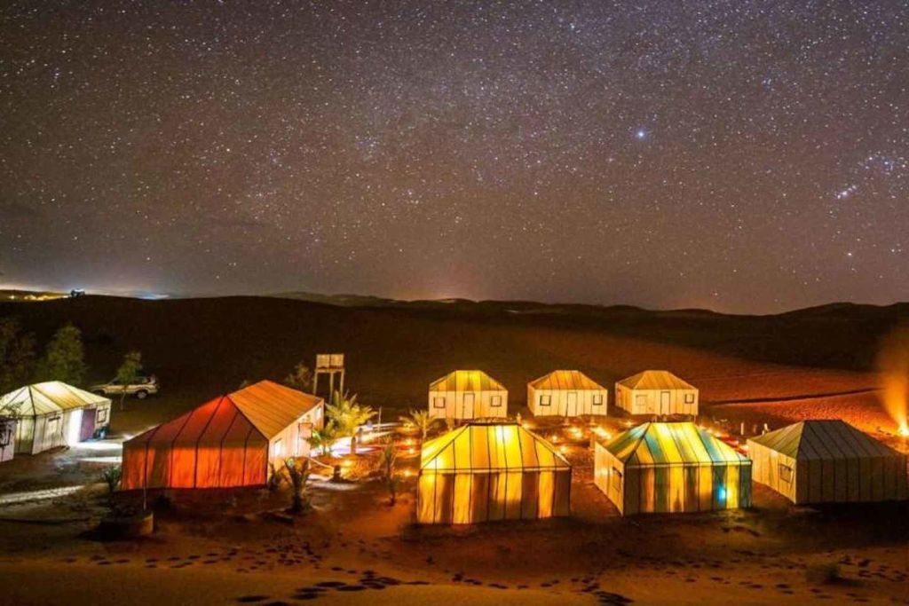 아침 식사 후, 메르주가로 향하기 전에 인상적인 토드라 협곡을 지나게 됩니다. 늦은 오후에는 낙타를 타고 모래 언덕에서 일몰을 감상하세요. 사막 캠프에 도착해 현지 음식, 드럼 연주, 별 관측으로 기억에 남는 밤을 보내세요.