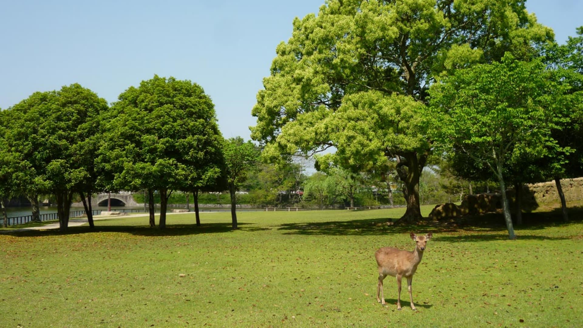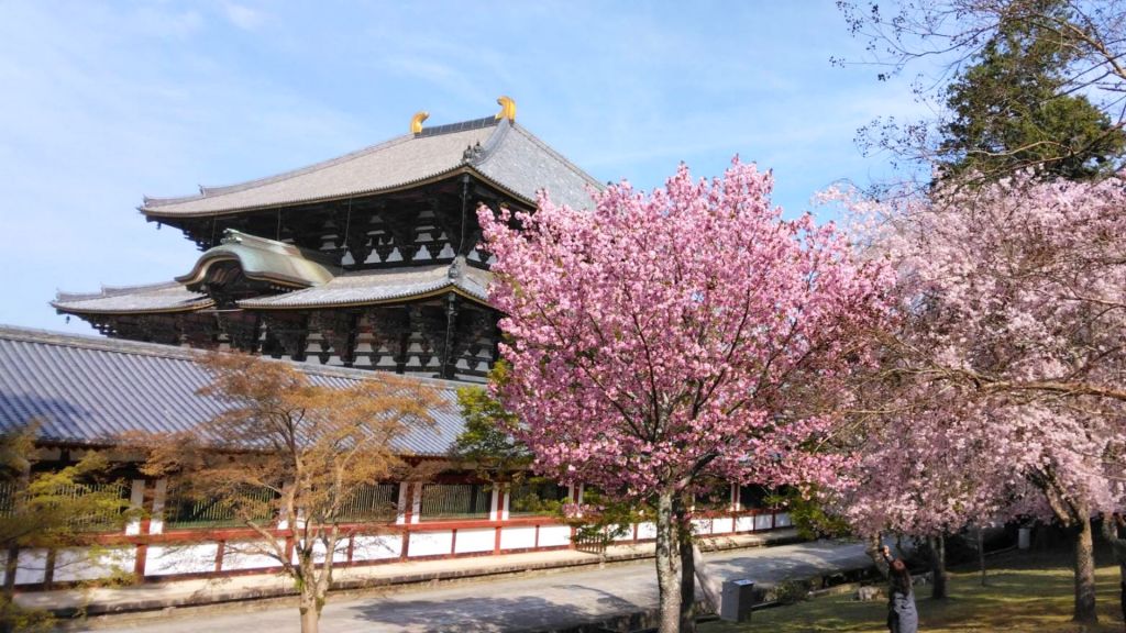 * 벚꽃과 귀여운 사슴이 함께 있는 나라 공원에서 사슴이 뛰어노는 벚꽃의 아름다운 사진을 찍어보세요.