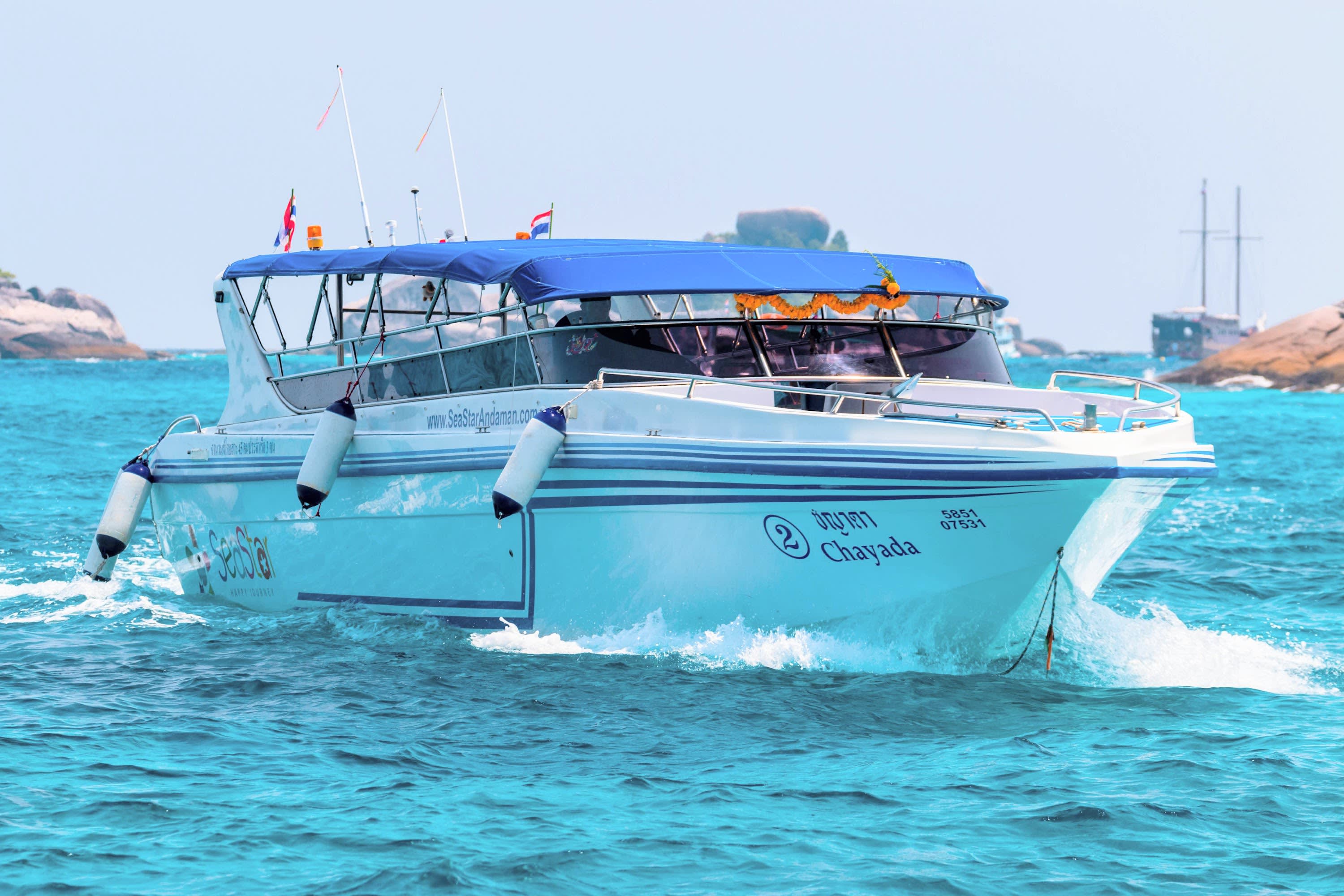 씨스타 안다만과 함께 떠나는 시밀란 제도 여행! 카오락과 푸켓에서 출발하는 최신형 스피드 카타마란을 타고 편안하게 둘러보는 특별한 하루를 경험해 보세요. 그린 핀즈(Green Fins) 지침을 준수하는 친환경적인 접근 방식으로 최고의 스노클링 명소를 탐험하며 깨끗한 바다를 만끽할 수 있습니다.