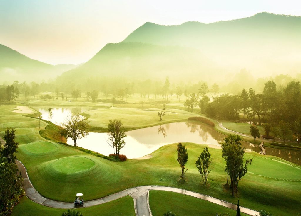 산으로 둘러싸인 아름다운 자연이 가득한 계곡을 사이에 두고 태국의 골프장답게 도전적이고 독특한 배치로 골프장 코스를 만듭니다.