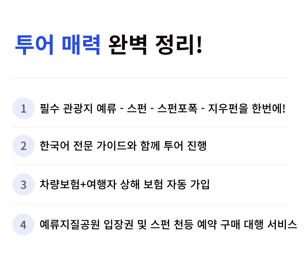 투어 가이드가 포함 된 상품입니다.