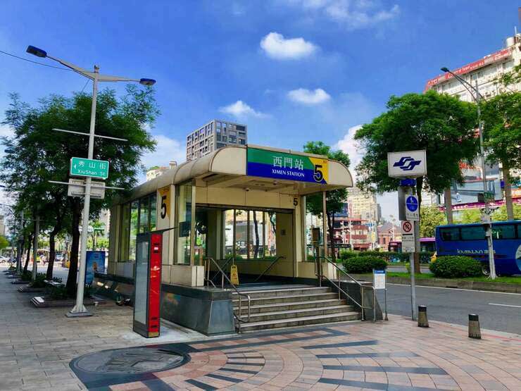 지하철 파란색 라인/ 초록색 라인 시먼역 5번 출구 Ximen Station Exit No.5 밖으로 나오시면 됩니다.