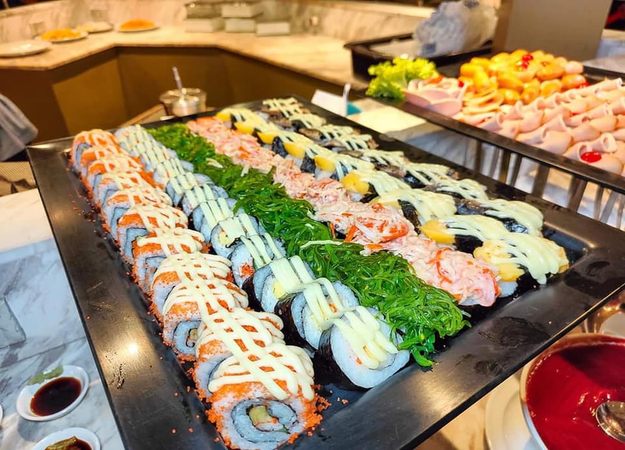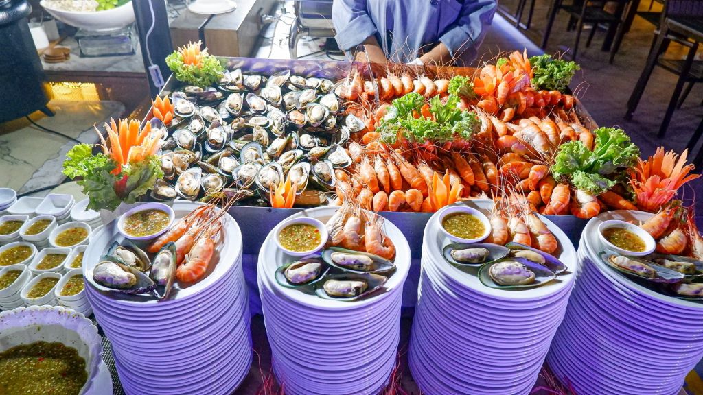 비바 알랑카 크루즈에서 시원한 맥주 한잔과 맛있는 뷔페,