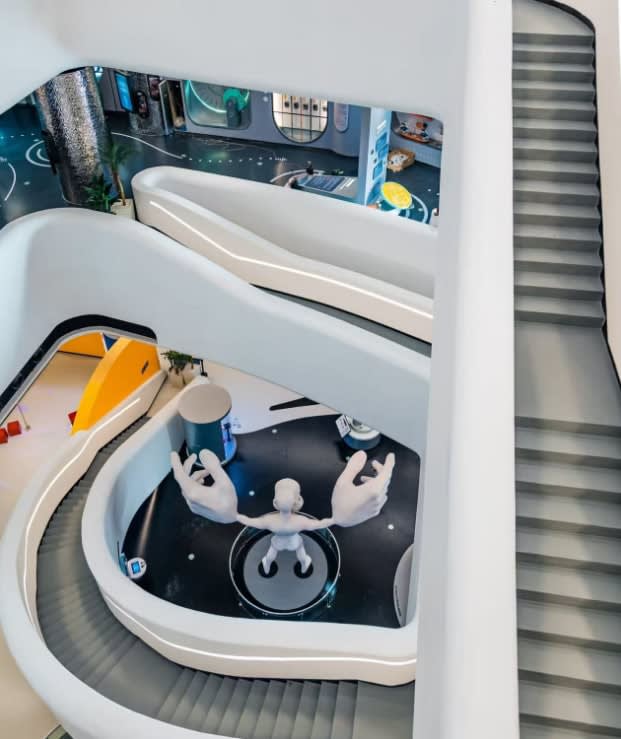* 모든 구석구석이 멈춰야 할 가치가 있습니다. 은색 곡면이 반사하는 빛과 그림자, 발걸음을 감지하는 인터랙티브 바닥, 흐르는 데이터 조각품…… 이곳은 단순한 전시관이 아니라 기술과 예술이 융합된 꿈입니다.