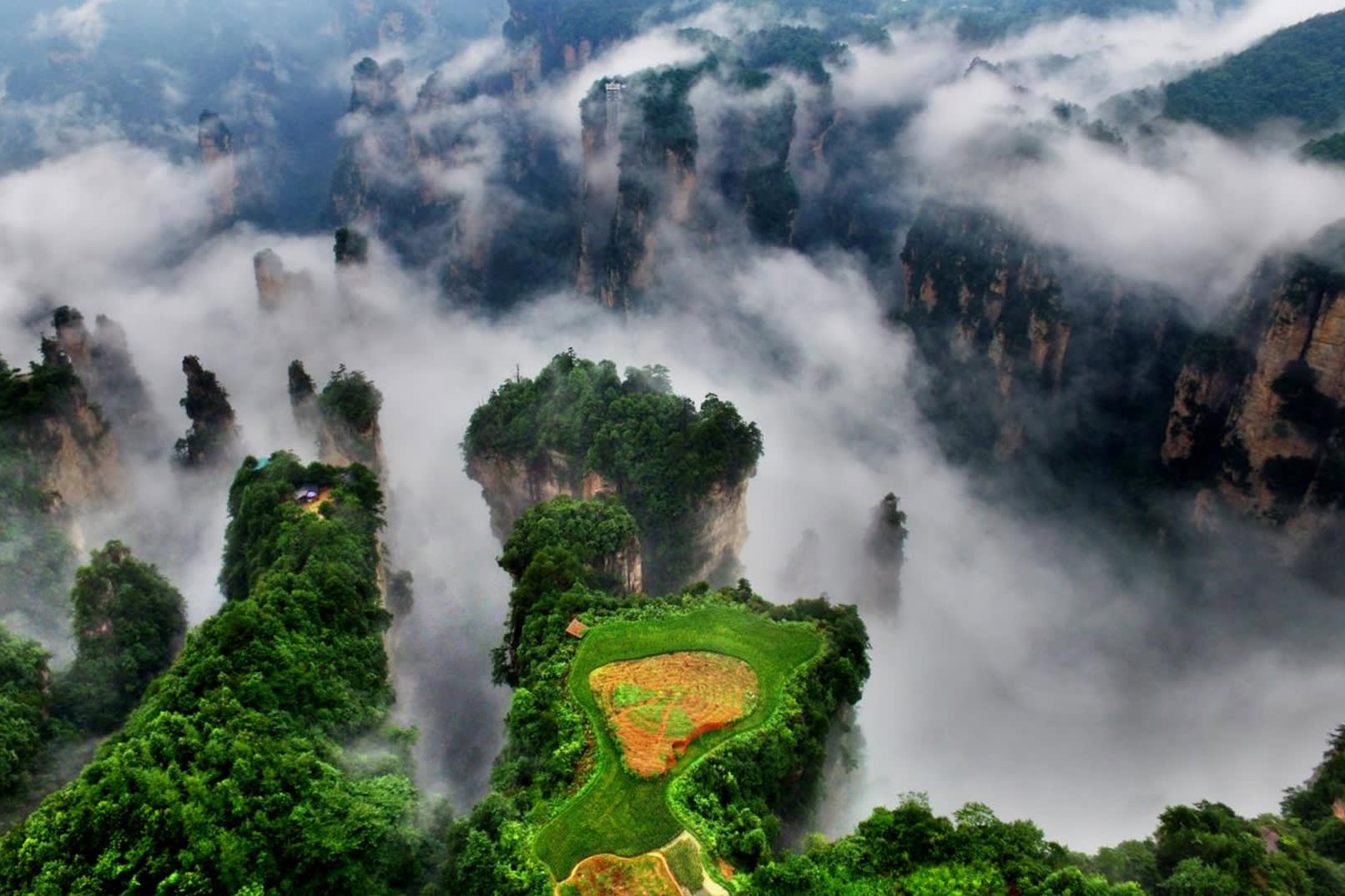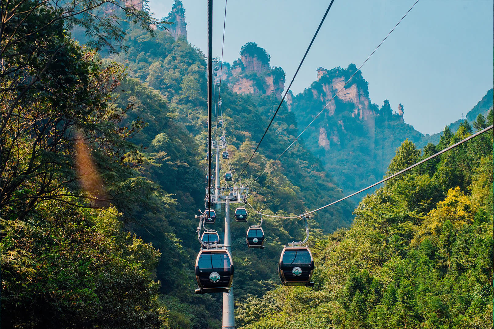 * D2: 장자제 국가 삼림공원 "진볜시(金鞭溪) - 바이룽 엘리베이터(百龙电梯) 상행 - 위안자제(袁家界) - 라오우창(老屋场) 공중 전원 - 톈쯔산(天子山) - 케이블카 하행 - 스리화랑(十里画廊)", 호텔 투숙.