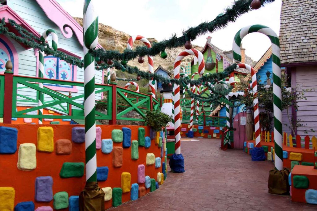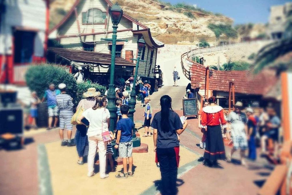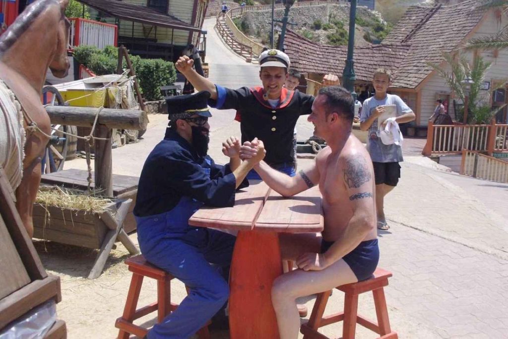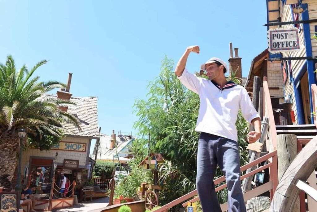 공원에 들어가 로빈 윌리엄스가 주연한 1980년대 영화 '뽀빠이'의 오리지널 세트에 있는 뽀빠이의 집, 학교, 소방서, 치과, 빵집에서 사진을 찍으며 세일러맨 뽀빠이, 올리브 오일, 블루토 선장, 그리고 친구들을 만나보세요.