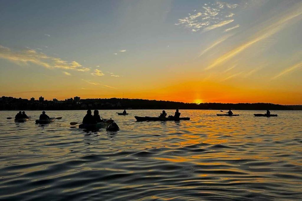노를 잡고 물 위를 미끄러지며 황금빛 노을에 물든 시드니 하버를 감상해 보세요. 일몰 카약 투어는 도시가 낮에서 밤으로 변하는 동안 세계에서 가장 상징적인 항구 중 하나를 탐험할 수 있는 정말 독특한 방법입니다. 가이드와 함께 카약 어드벤처를 즐기며 잔잔한 물 위를 미끄러지듯 지나가며 시드니 오페라 하우스, 하버 브리지, 주변 스카이라인의 멋진 전망을 감상하세요. 풍부한 색감으로 빛나는 하늘과 물에 반사되는 빛의 변화가 어우러지는 황홀한 순간, 모험과 평온을 동시에 즐기기에 완벽한 순간입니다.