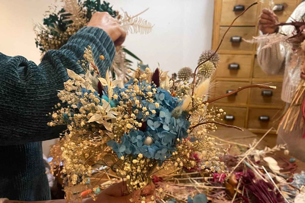 꽃 디자인의 예술에 도전해 보시고 건조 꽃 꽃다발을 만들어보세요.