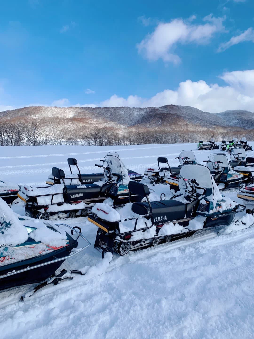 도야 호수 전망대/이곳에는 설상 오토바이 등 엔터테인먼트가 있어 초보자도 마음껏 눈과 자연을 즐길 수 있습니다. (설상 오토바이 비용은 개인 부담) 참고 비용: 1인 JPY13000 2인 JPY18000