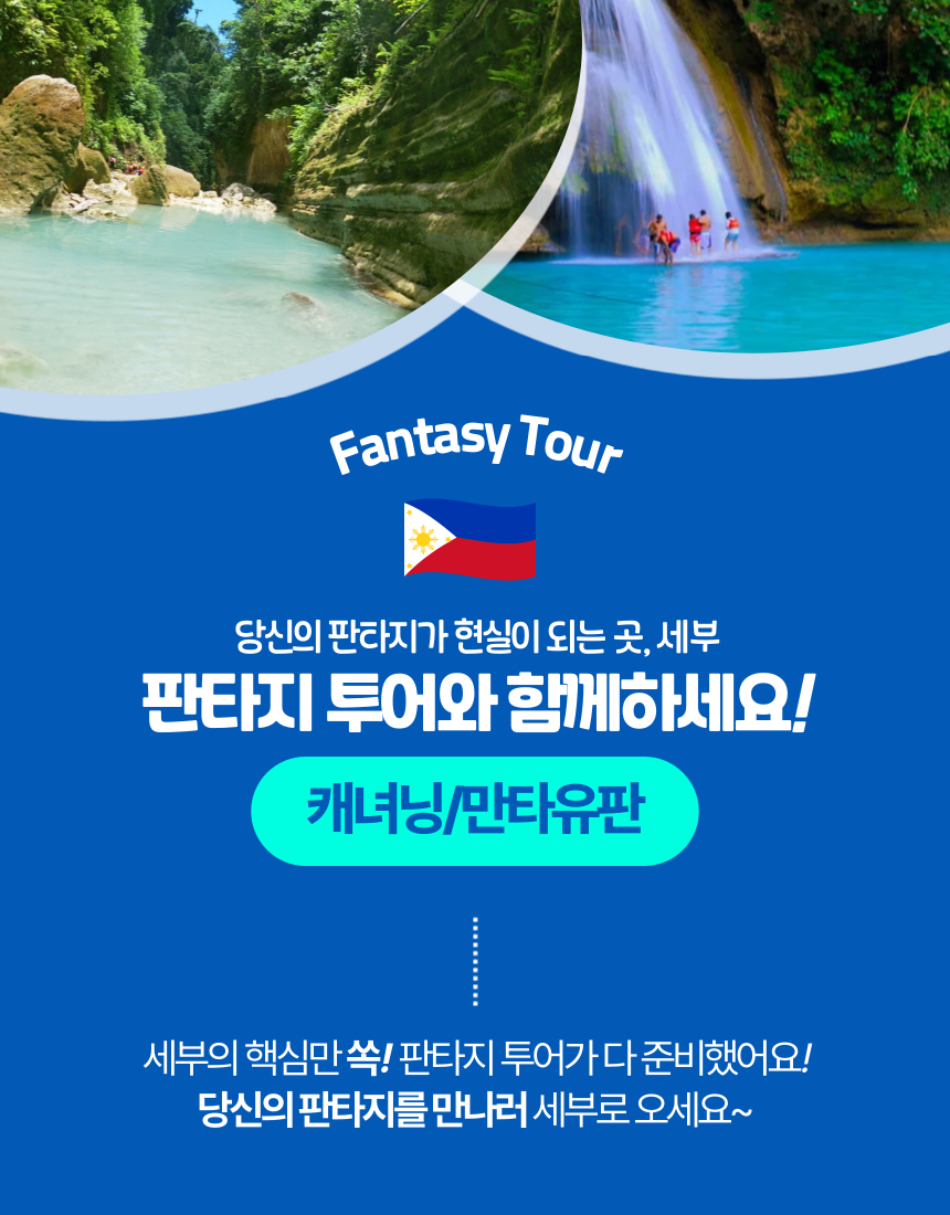 [판타지투어] 단독 캐녀닝+만타유판 프라이빗 투어 (여행자 보험 5일 포함)