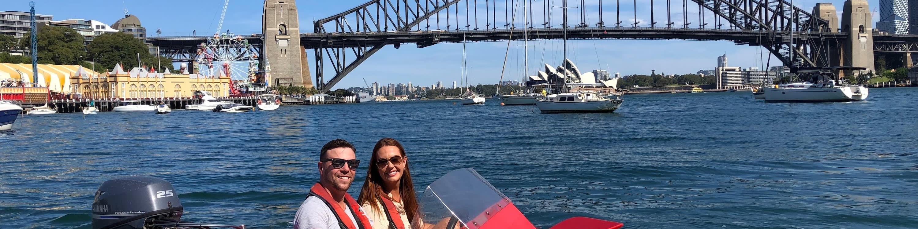 준비, 출발! 짜릿한 빨간색 2인승 스피드보트를 타고 시드니 하버 최고의 명소를 탐험하는 특별한 투어에 참여하세요! 시드니 하버 브리지 아래를 직접 통과하고, 오페라 하우스의 웅장한 자태를 눈앞에서 감상할 수 있습니다. 전문 가이드의 안내에 따라 보트를 타고 웅장하게 솟아오른 오페라 하우스의 돛을 올려 보세요.