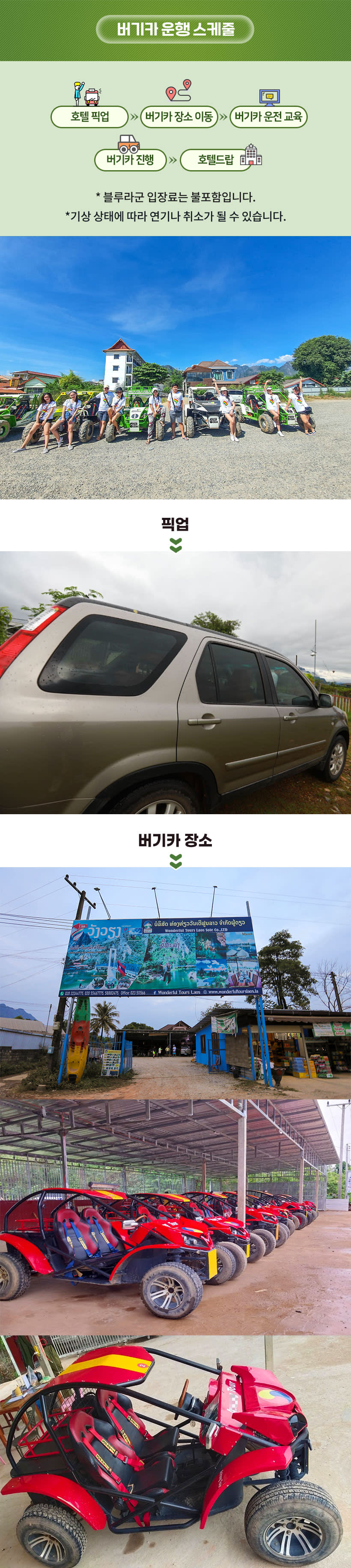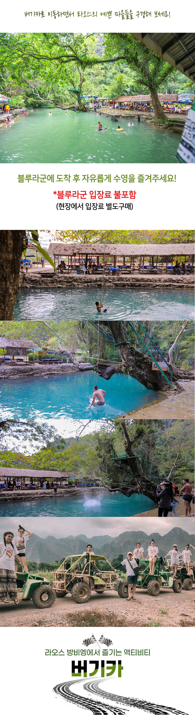 호텔 픽업, 샌딩 포함! 버기카 장소로 이동하여 안전교육 받기!방수팩과 마스크 착용 후 블루라군으로 슝슝 이동!래쉬가드나 수영복 착용 추천합니다~