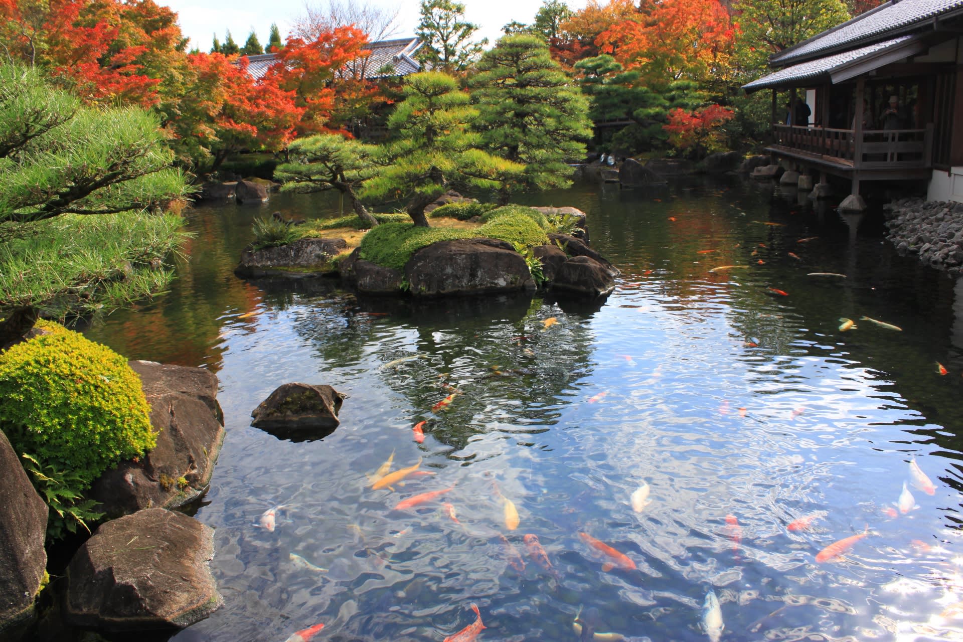 * 아름다운 계절별 식물과 평화로운 연못이 있는 전통 일본 정원인 고코엔 정원을 거닐어보세요.