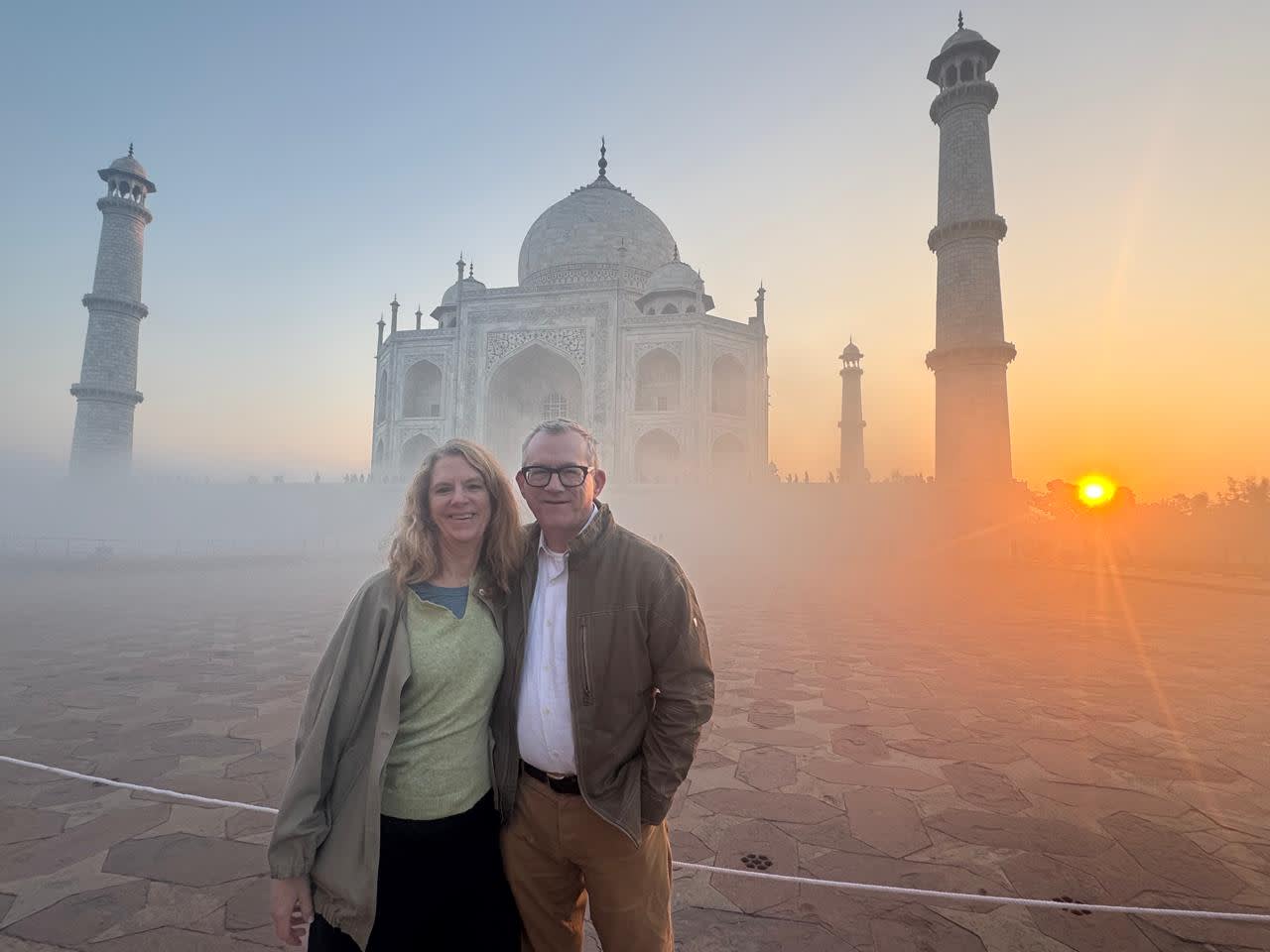 * 타지마할 위로 떠오르는 일출을 감상하며 황금빛으로 물드는 기념비를 감상하세요.