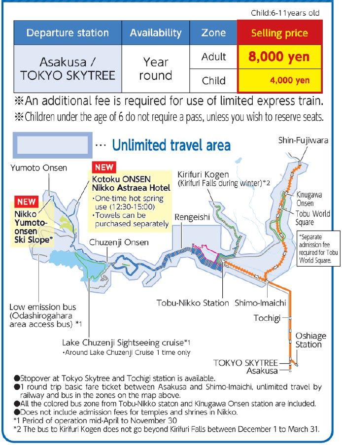 - “닛코의 신사 및 사원” 입장료는 포함되지 않습니다.