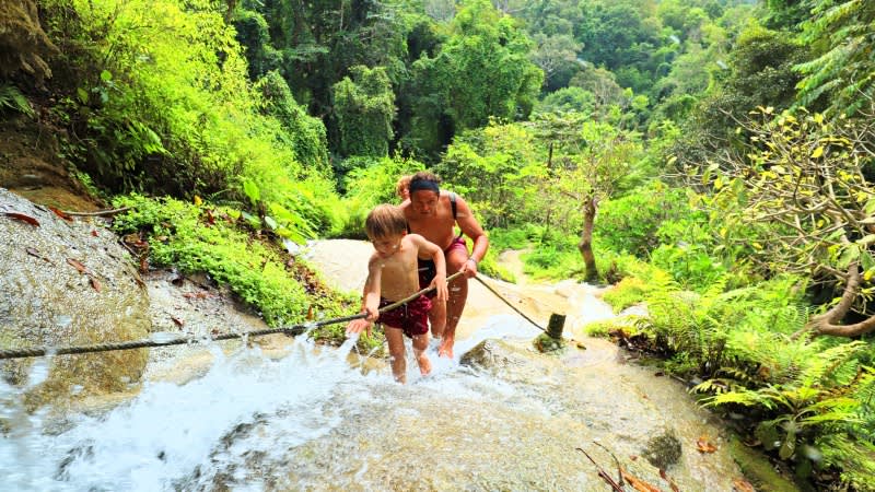 * 치앙마이 스티키 폭포 (Sticky Waterfall), 태국 치앙마이에 위치한 특별한 자연 명소입니다. 석회암으로 덮인 폭포를 쉽게 오를 수 있습니다. 가족, 특히 아이들에게 완벽한 장소이며, 자연을 즐기고 즐거운 시간을 보내기에 좋습니다. 스티키 폭포에서 모험과 상쾌한 분위기를 경험해보세요!