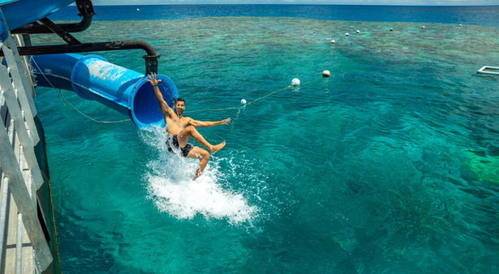 그레이트 배리어 리프의 유일한 워터슬라이드인 선로버 워터슬라이드를 체험해 보세요.