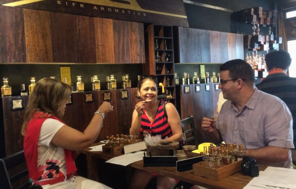 * 풀 퍼퓸 바에서 다양한 프리미엄 재료의 향을 맡고 테스트해 보세요.