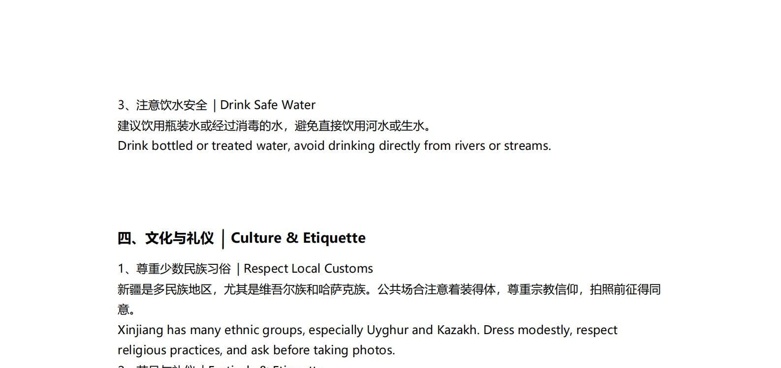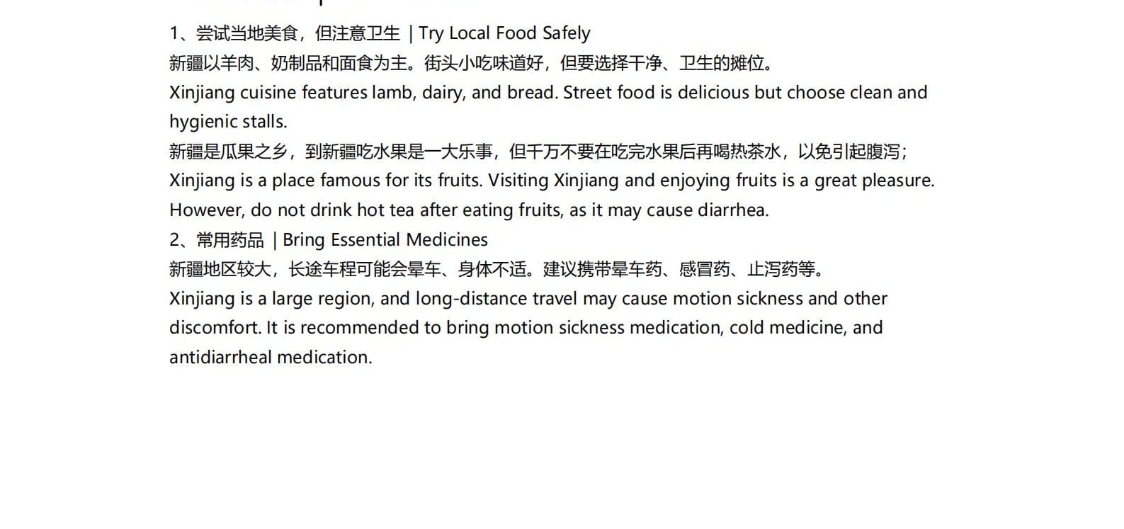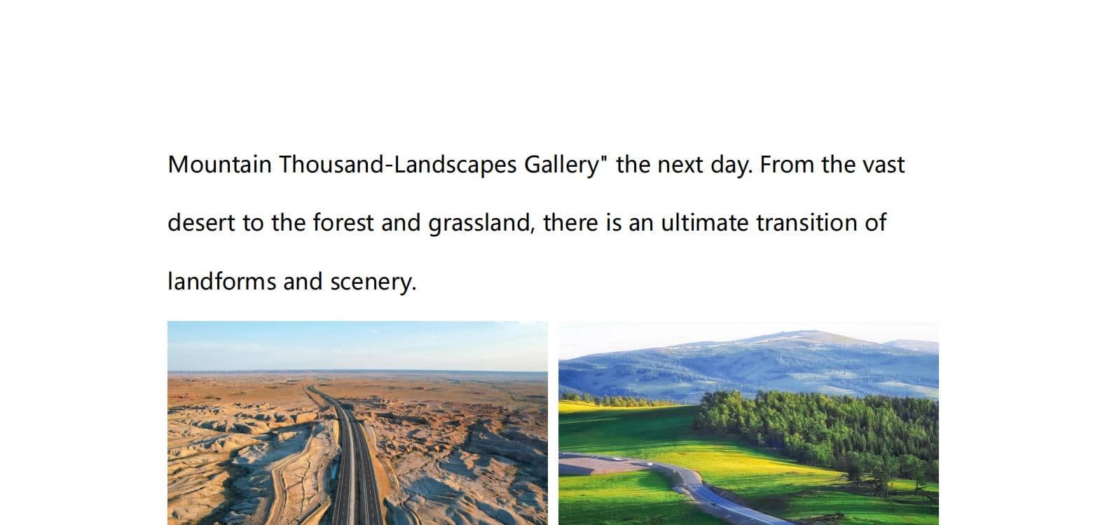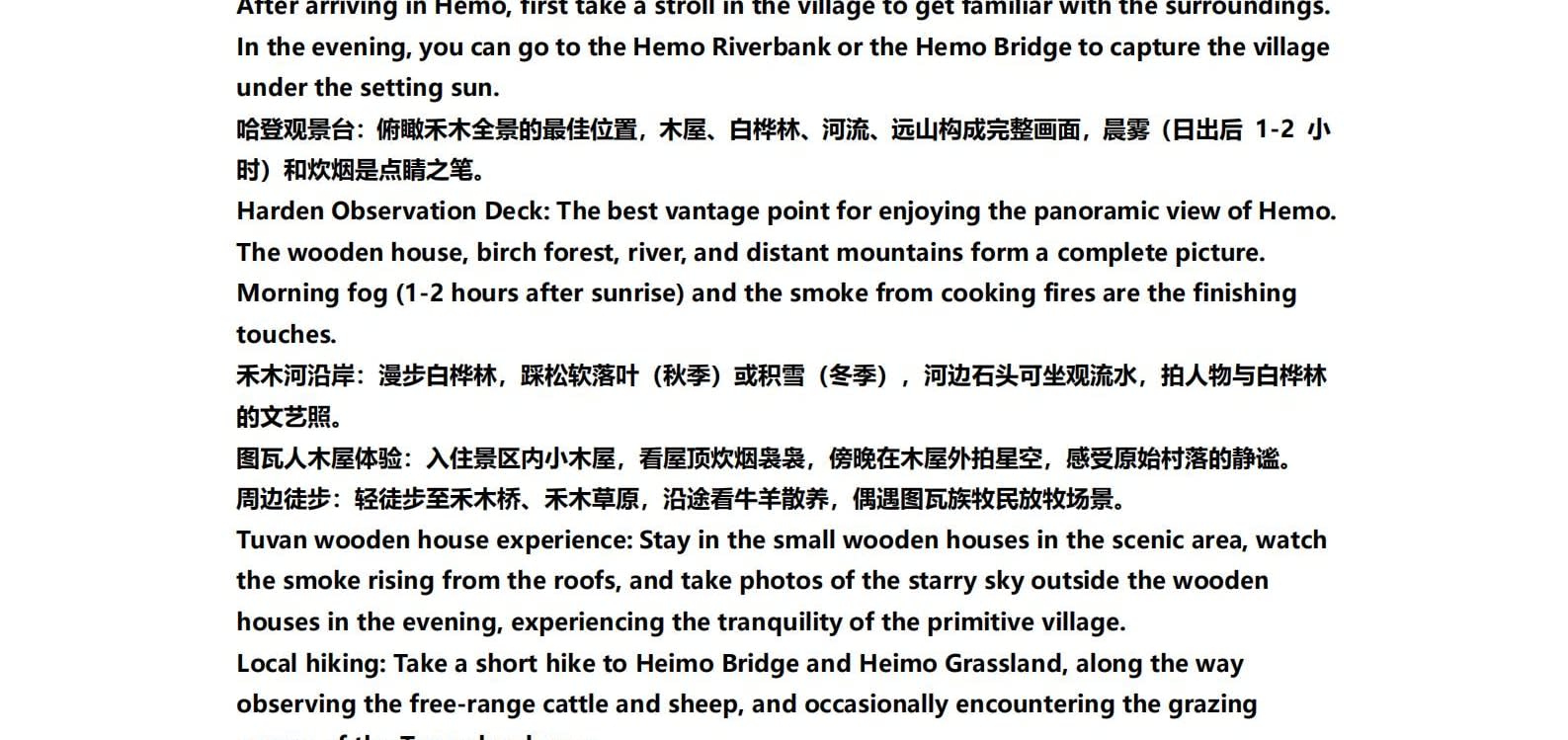 * 하루 만에 사계절을 경험하는 여행: 이 여정은 천산 천지(Tian Shan Heavenly Lake)의 눈 덮인 산과 수정처럼 맑은 호수, S21 사막 도로(S21 Desert Road)의 광활한 사막, 허메이(Hemei)의 원시 마을, 카나스(Kanas)의 푸른 물, 그리고 우리에루 악마의 도시(Wulieru Devil City)의 기이한 야단 지형에 이르기까지 매우 풍부하고 다양한 풍경을 제공합니다. 단 7일 만에 이 투어는 신장 북부의 가장 고전적인 특징들을 담아냅니다.