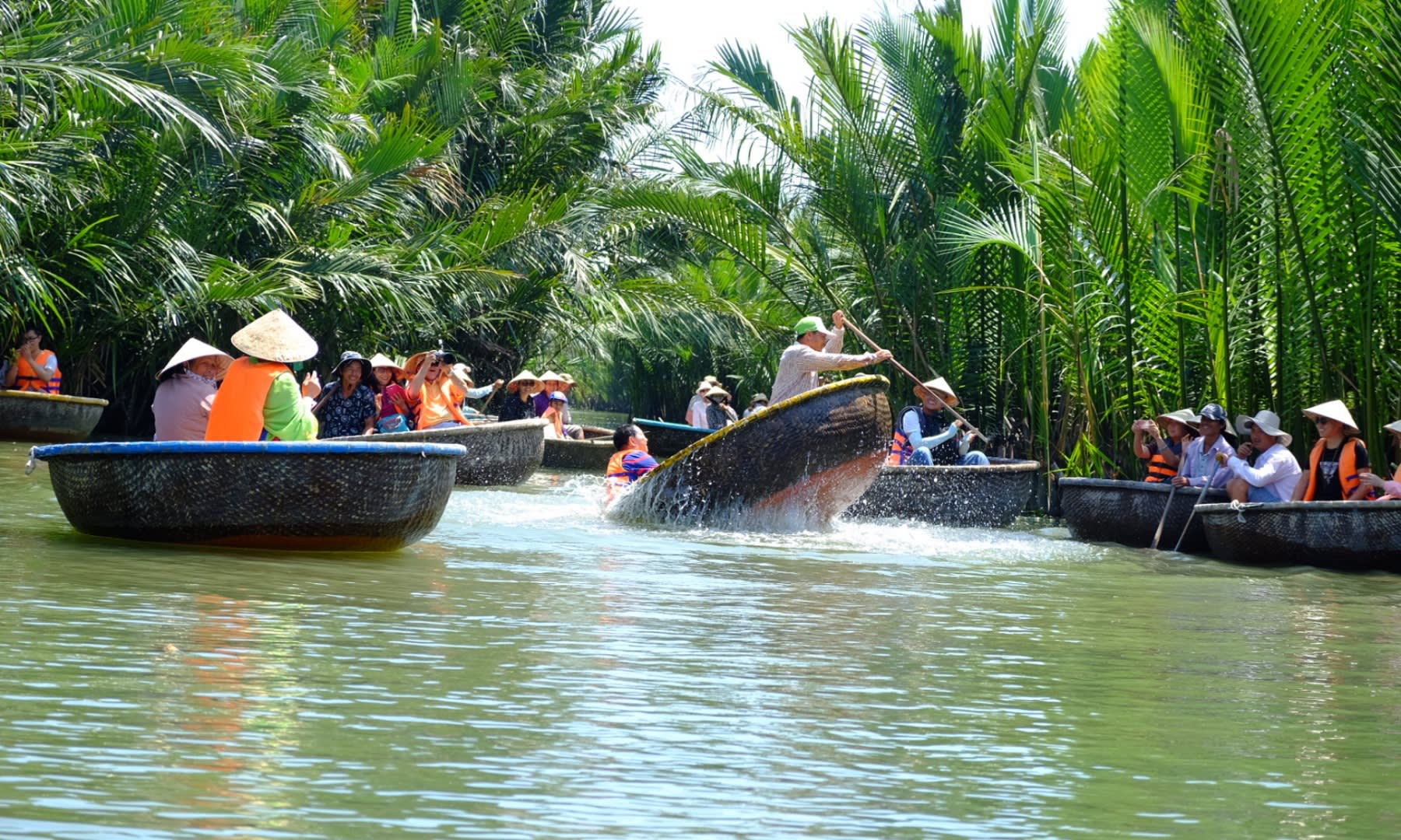 센트럴 베트남의 가장 상징적인 풍경을 통해 매혹적인 여행을 떠나 도시를 벗어나 보세요. 이 엄선된 투어는 바이 마우 코코넛 숲의 울창하고 에메랄드빛 수로로 여러분을 안내합니다.
