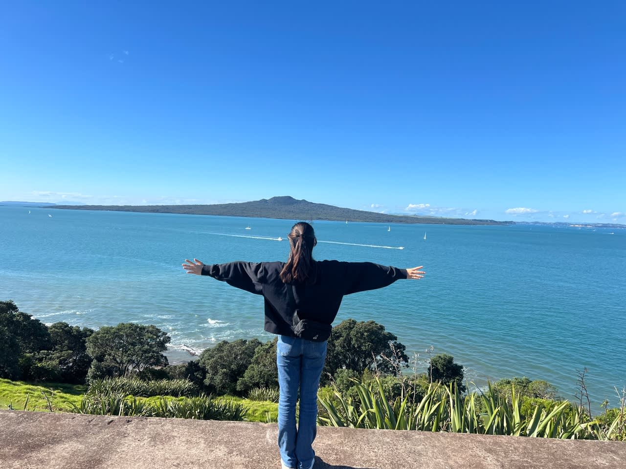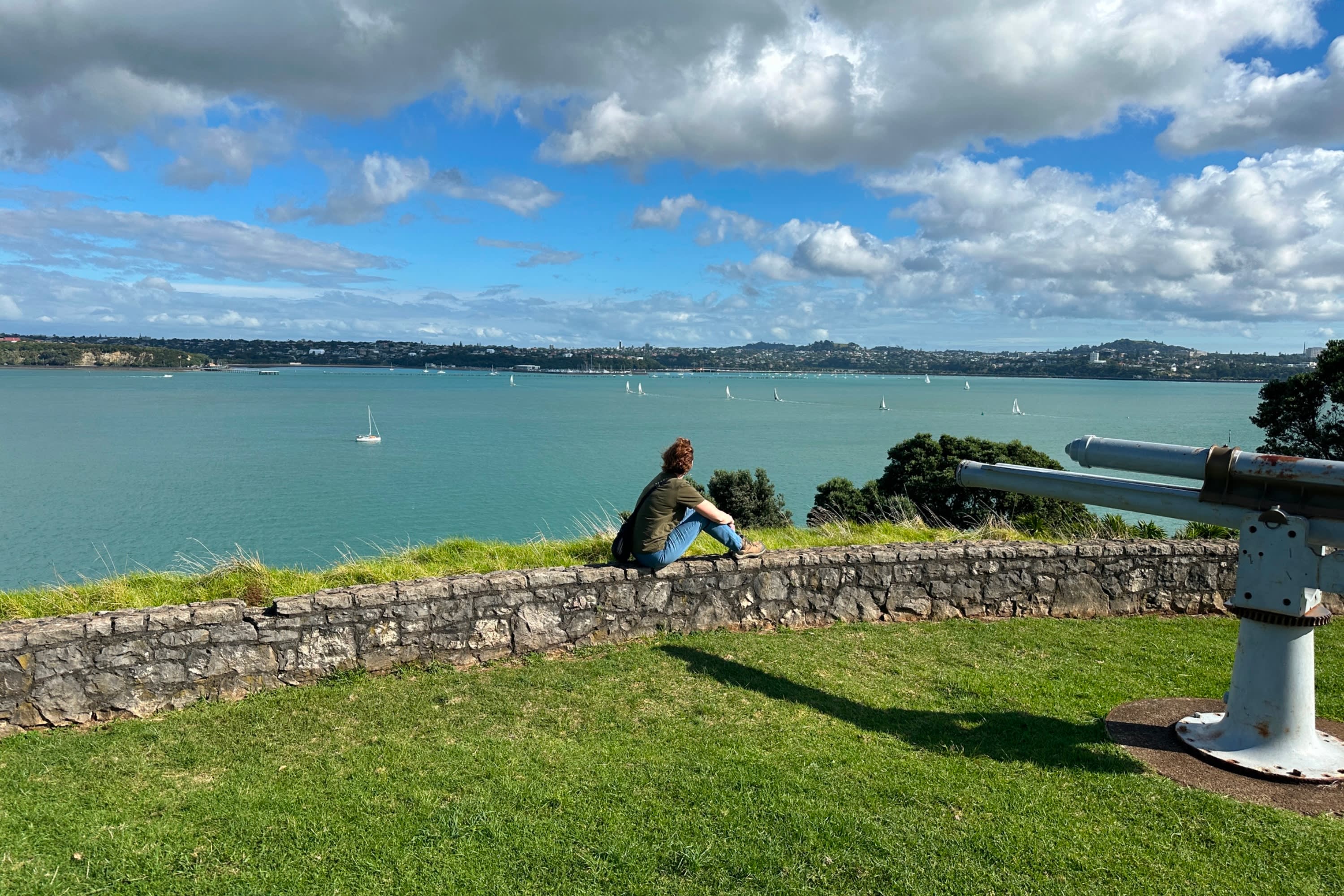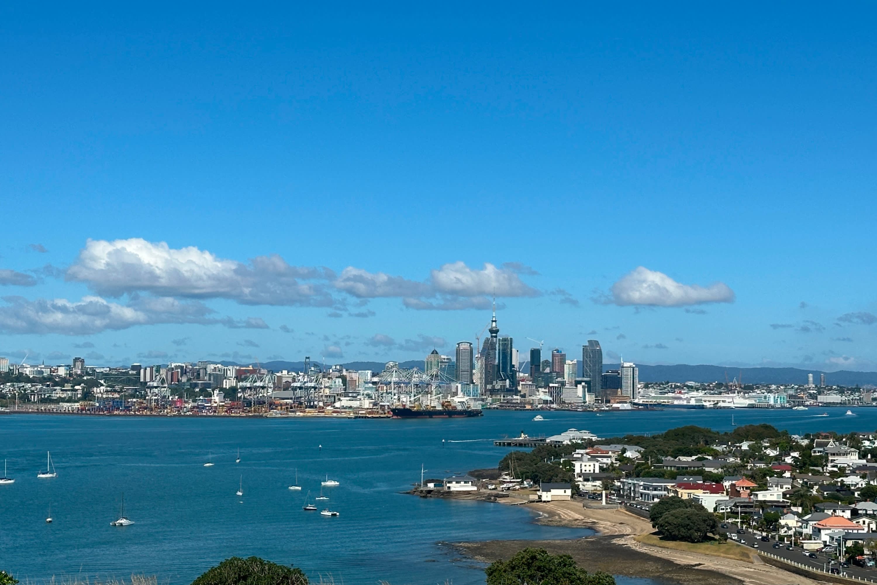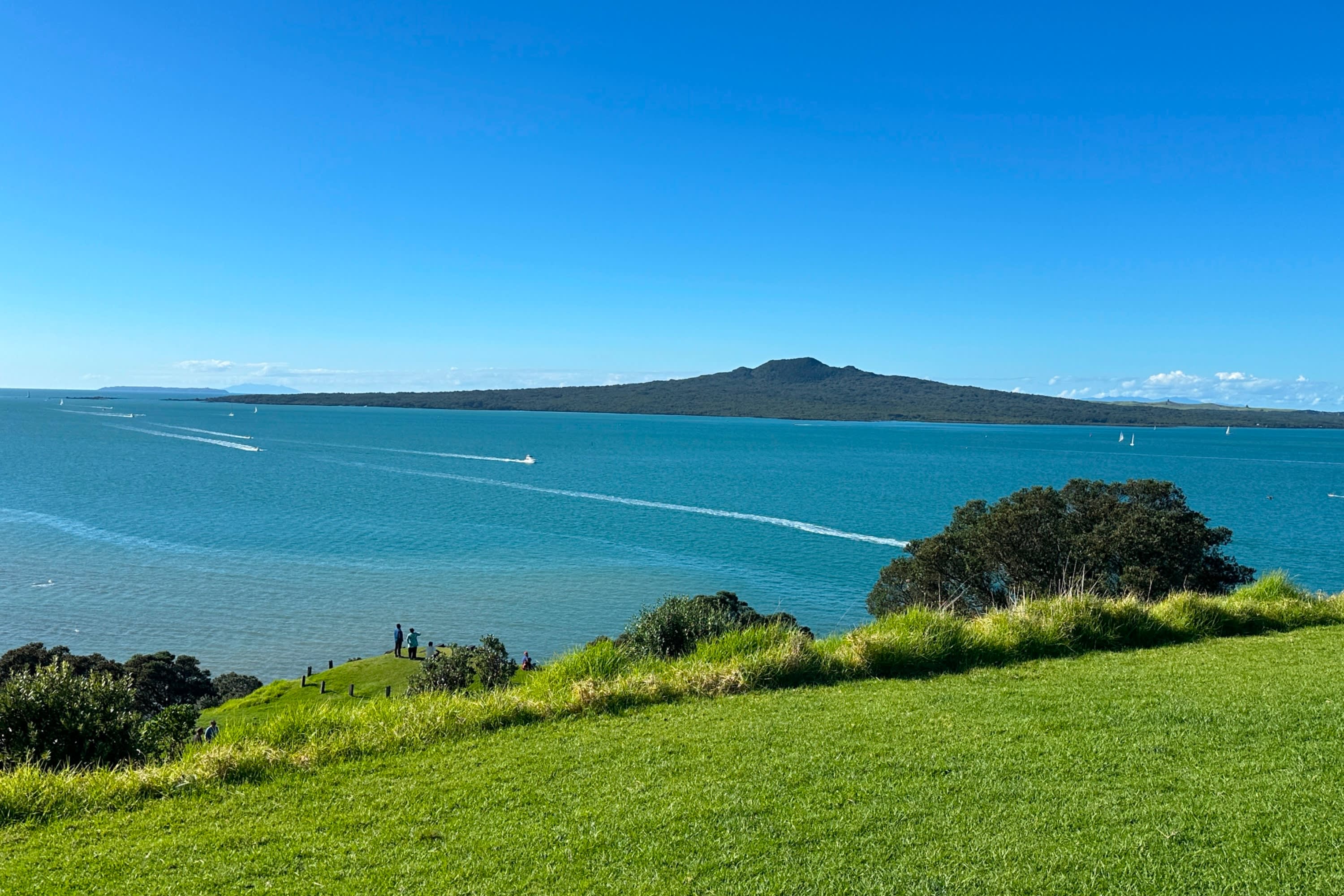 * 와이테마타 항구 입구에 위치한 노스 헤드 역사 보호 구역은 오클랜드의 화산 중 하나입니다.