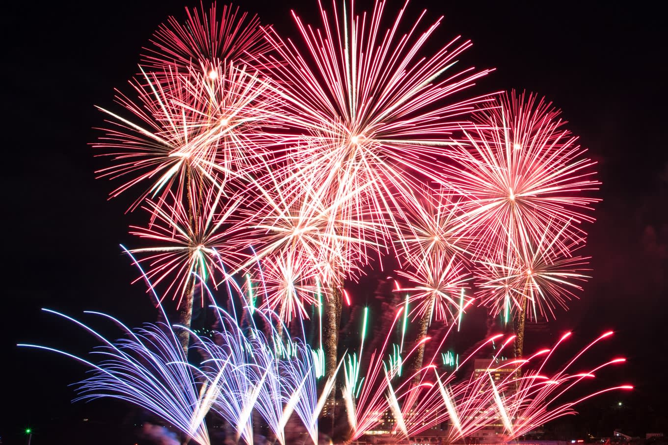 * 아타미 불꽃놀이는 연중 정기적으로 개최되는 불꽃놀이로, 여름에만 한정되지 않으며 일본 전국에 널리 알려져 있습니다. 아타미의 천혜의 지리적 위치는 불꽃놀이를 더욱 극적으로 만듭니다.