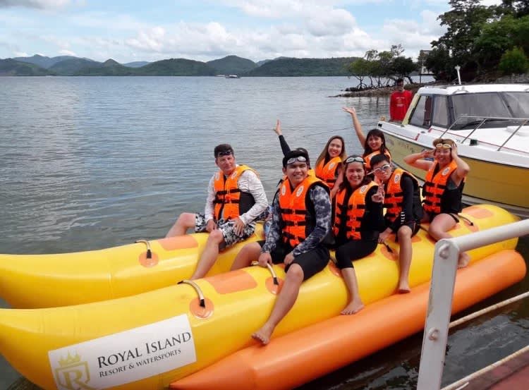 바나나 보트와 플라이피쉬는 이미 타보셨다고요? 그렇다면 새로운 액티비티에 도전해보세요! 와플 글라이더를 타고 신나는 해변에서의 하루를 만끽해보세요. 아니면 클래식한 액티비티가 더 좋으신가요? 이 모든 액티비티가 다 흥미진진해 보이시나요? 그렇다면 햇볕 아래서 선탠만 하지 마시고, 짜릿한 수상 스포츠 4종 세트로 휴가를 더욱 특별하게 만들어보세요! 코론 하버 스퀘어에서 크루를 만나거나 호텔 픽업 & 드롭 서비스를 이용하여 로열 아일랜드 워터스포츠로 향하는 스피드보트에 몸을 실으세요. 섬에 도착하면 바나나 보트를 타고 신나게 달려보고, 플라이피쉬에 꽉 매달려보고, 와플 글라이더에서 떨어지지 않도록 버텨보고, 도넛을 타면서 비명을 지르지 않도록 노력해보세요. 이 패키지는 원하는 대로 2가지 또는 4가지 액티비티를 모두 즐길 수 있도록 구성되어 있습니다! 보너스로 투명 카약도 무료로 이용할 수 있습니다. 또한, 현장에서 추가 요금을 내고 워터 바이크도 이용할 수 있습니다.
