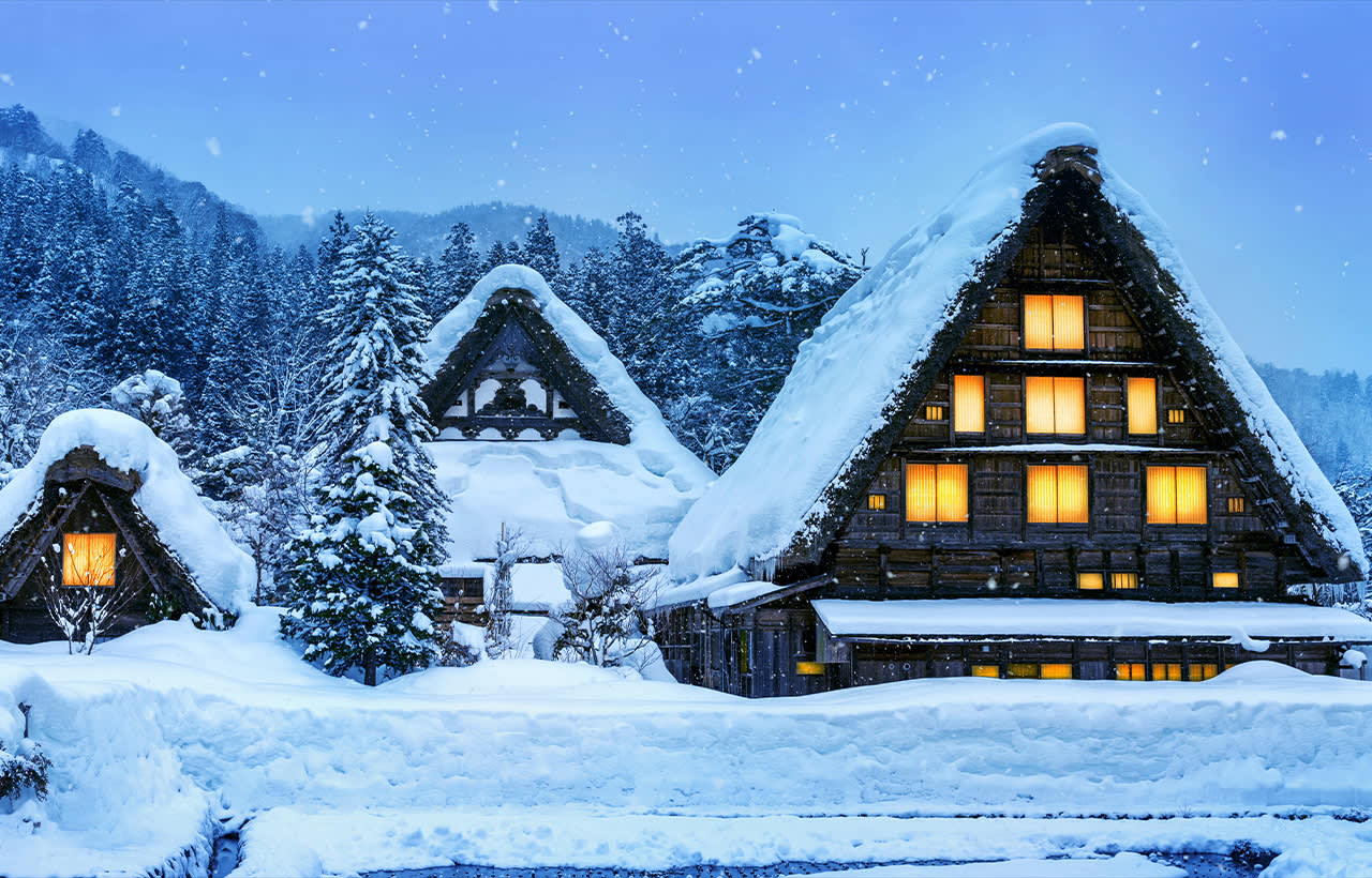 * 겨울 한정|시라카와고 & 게로 갓쇼무라 라이트업, 몽환적인 설경과 야간 조명의 조화로 일본을 대표하는 겨울 동화 세계를 느껴보세요.