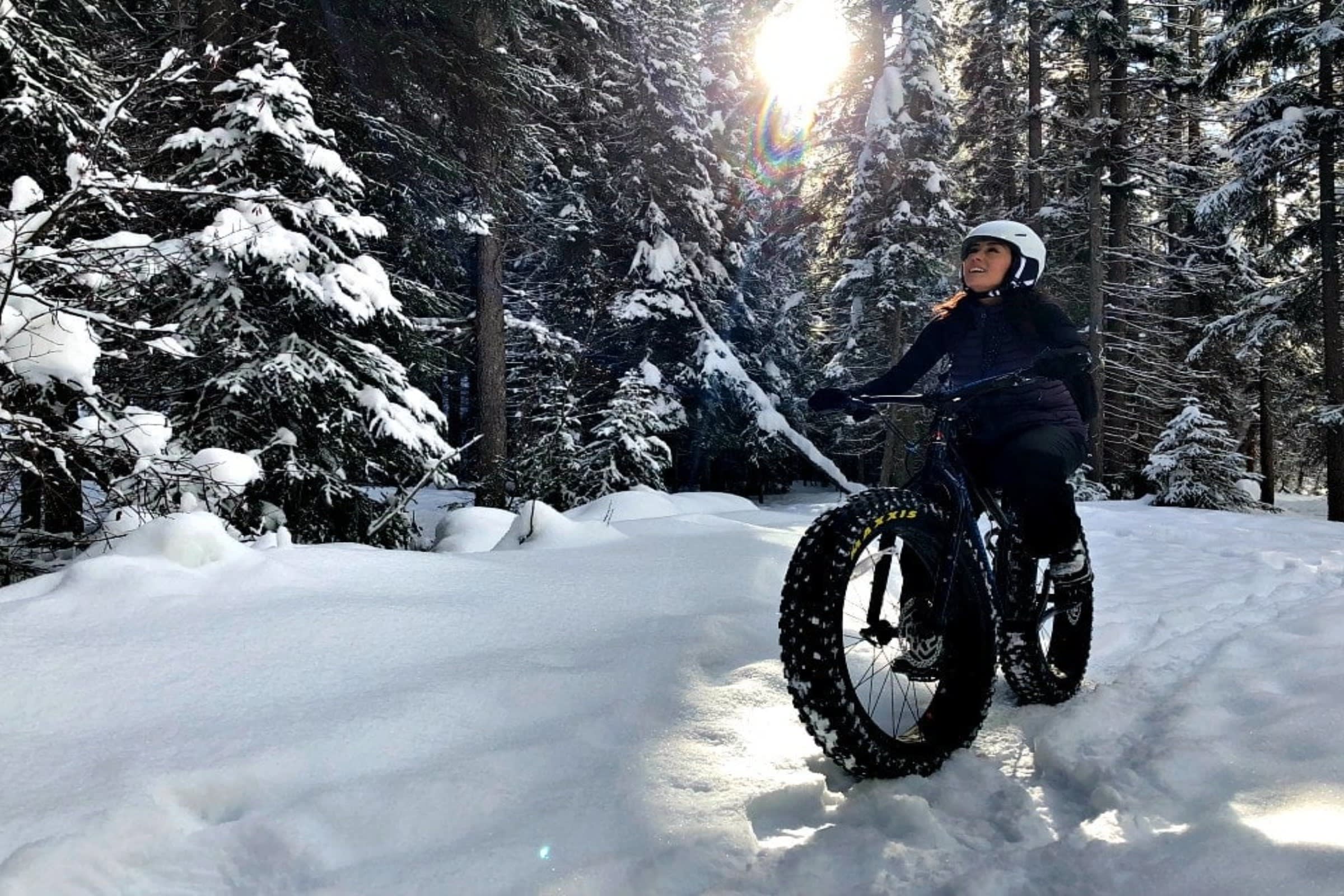 * 사계절 내내 밴프의 아름다운 풍경을 만끽할 수 있는 전기 팻바이크를 타보세요.