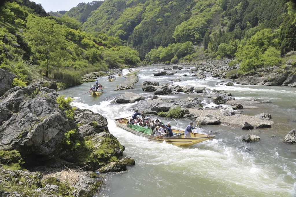 교토 가메오카에서 명승지 아라시야마까지 약 16km의 계곡을 따라 내려가는
