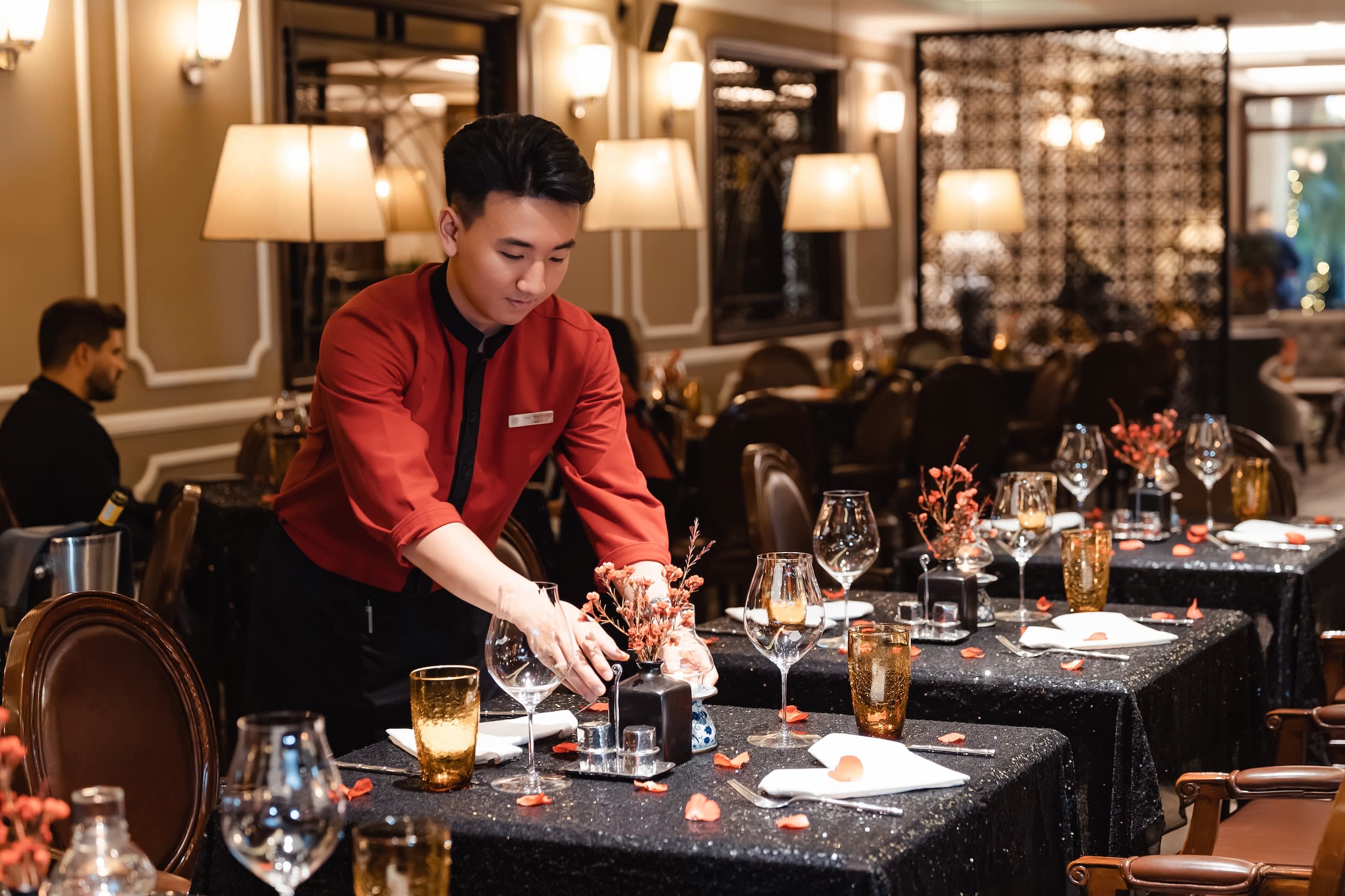 • 하노이 구시가지의 활기찬 거리에서 벗어나 레드 빈 마이의 평화로운 매력 속으로 빠져보세요. 번화한 마이 거리에서 불과 몇 걸음 떨어진 곳에 위치한 따뜻하고 차분한 인테리어는 여러분이 긴장을 풀고 재충전할 수 있도록 맞이합니다. 레드 빈 레스토랑으로 향하면 1층에 아늑한 미니 치어스 스타일 바가 있어 식사 전에 긴장을 풀기에 완벽한 장소를 제공합니다. 내부는 부드러운 크림색과 갈색 톤, 은은한 조명, 전통적인 동남아시아 디자인 디테일이 어우러져 편안하면서도 우아한 분위기를 자아냅니다. 베트남 소수 민족 직물에서 영감을 받은 풍부한 태피스트리는 공간에 미묘한 문화적 감각을 더합니다. 하노이 중심부에 위치한 아늑한 오아시스에서 평화로운 미식 휴식을 취하며 정통 베트남 요리를 즐겨보세요.