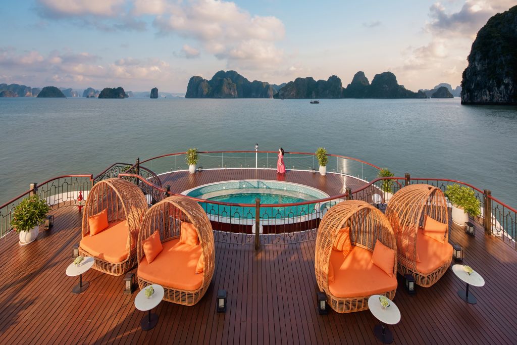클래식한 인도차이나 스타일과 현대적인 편안함이 조화를 이루는 5성급 크루즈에서 유네스코 세계 문화유산으로 지정된 하롱베이를 편안하고 잊지 못할 추억을 만들어보세요.