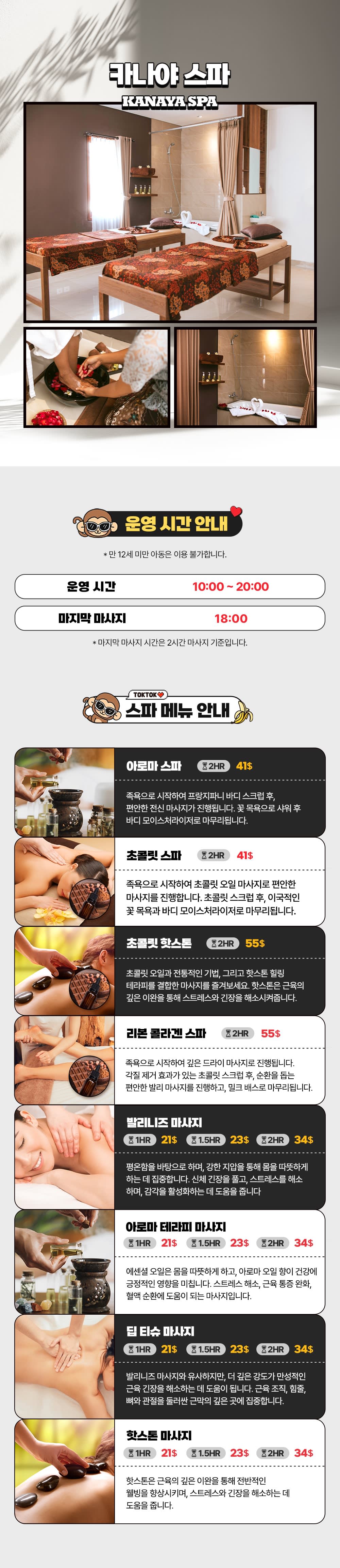 여행의 피로 회복은 물론 힐링하는 시간을 카나야 스파에서 가져보세요!