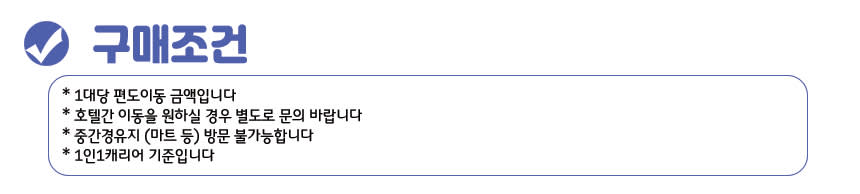 공항에서 투숙 호텔, 투숙 호텔에서 공항으로 이동이며, 중간 경유(다른 장소 방문) 불가