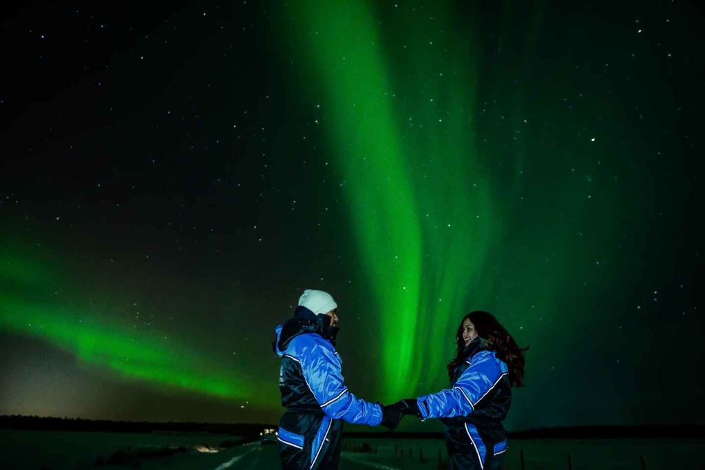 가는 길에 가이드가 오로라의 과학, 전설, 이야기를 설명해 드릴 것입니다. 밤하늘 아래에서 전문 DSLR 사진을 찍어 드립니다. 저녁 내내 따뜻하고 편안하게 지낼 수 있도록 보온 작업복, 뜨거운 음료, 가벼운 간식이 제공됩니다.