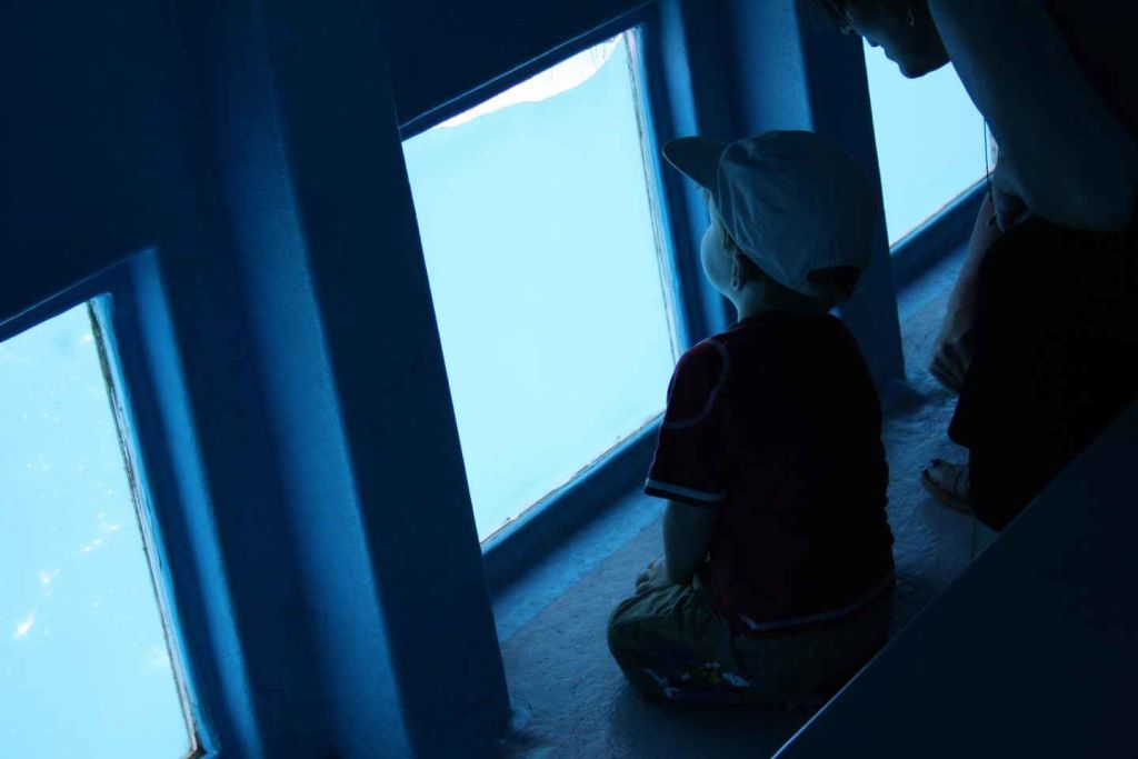 갑판 아래로 내려가 대형 유리 패널을 통해 해양 동물을 관찰하세요.