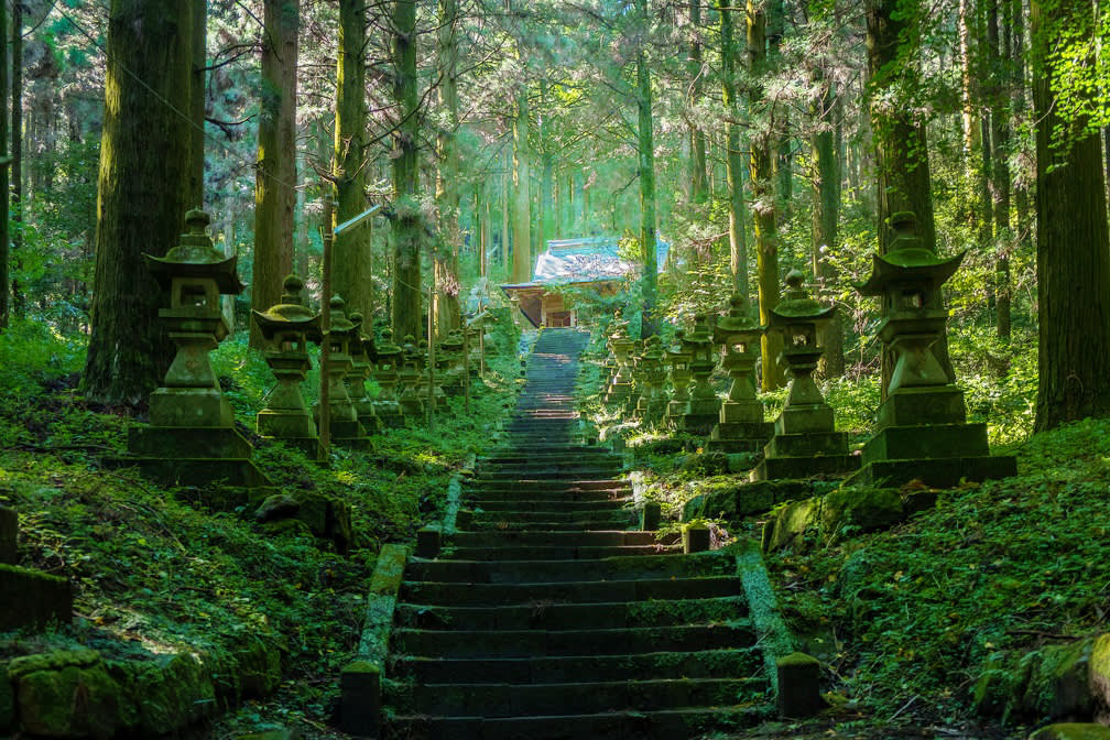 가미시키미 구마노자 신사 많은 애니메이션 팬들이 특별히 방문하는 곳으로, 이곳은 《반딧불의 숲으로》의 배경이 된 영감의 장소 중 하나로 여겨집니다. 삼나무 숲, 돌계단, 석등이 길게 이어져 조용하면서도 약간의 신비로움을 자아냅니다. 참배길에 서는 순간 정말로 애니메이션 세계에 들어온 듯한 착각을 불러일으킵니다.