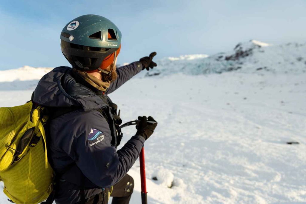 빙하에 발을 디디면 아이젠을 부착하고 얼음 지형을 오르며 자연의 끊임없는 힘으로 형성된 이세상의 풍경을 가로질러 걸어갑니다. 가이드가 얼음 위를 안전하게 걷는 방법을 안내하고, 빙하용 크램폰을 착용하는 법을 알려드립니다. 매혹적인 푸른 얼음 형상을 감상하고, 깊은 틈새를 안전하게 탐색하며, 빙하의 형성, 이동 및 지속적인 변화에 대한 흥미로운 통찰력을 얻으세요. 이곳에서 '떨어지는 빙하'라는 뜻의 팔요쿨(Falljökull) 빙하가 유래한 폭포를 볼 수 있습니다.