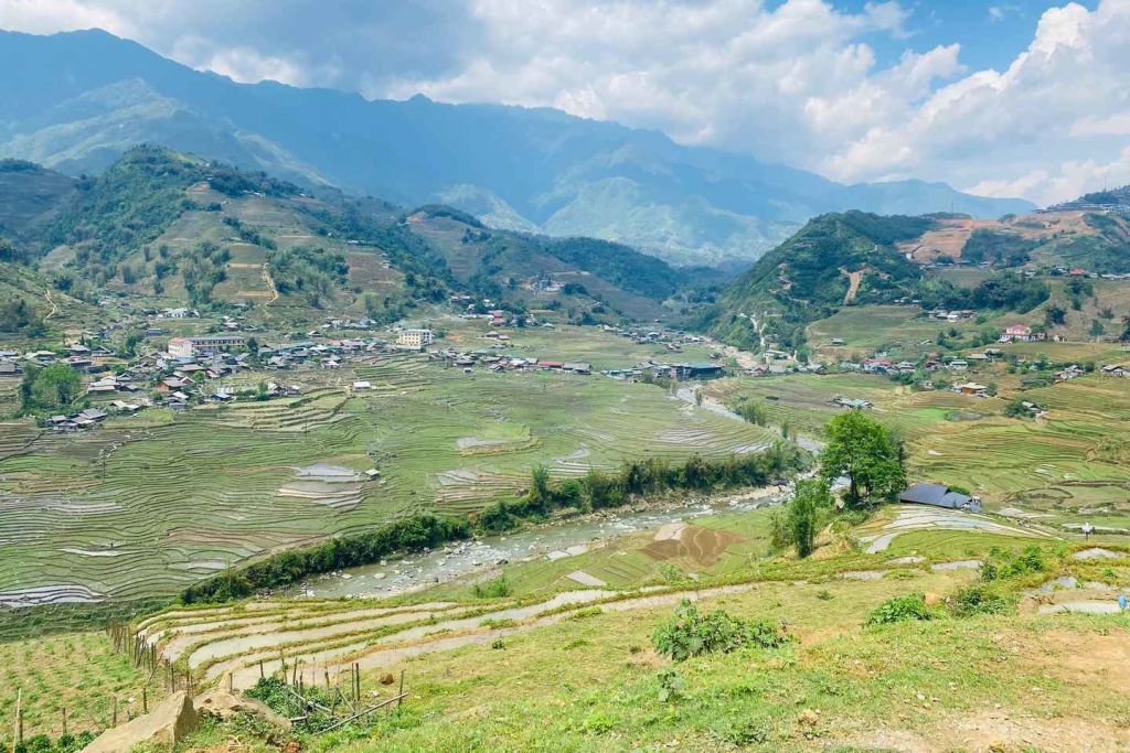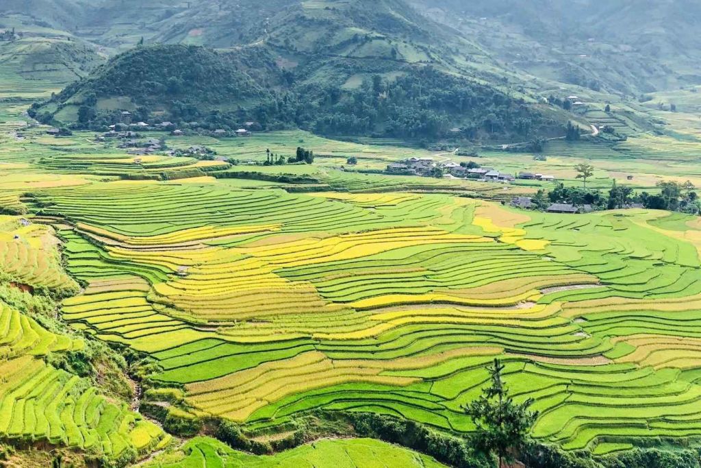 무옹호아 계곡의 마을에는 아름다운 계단식 논이 있습니다.