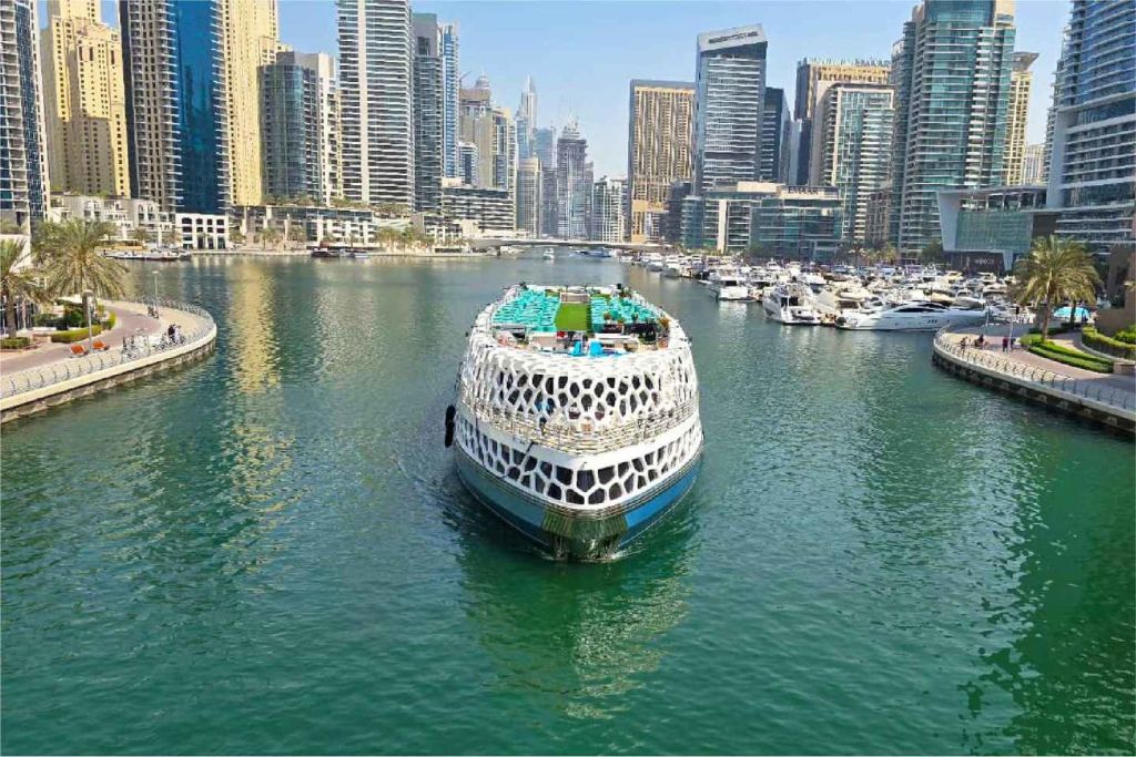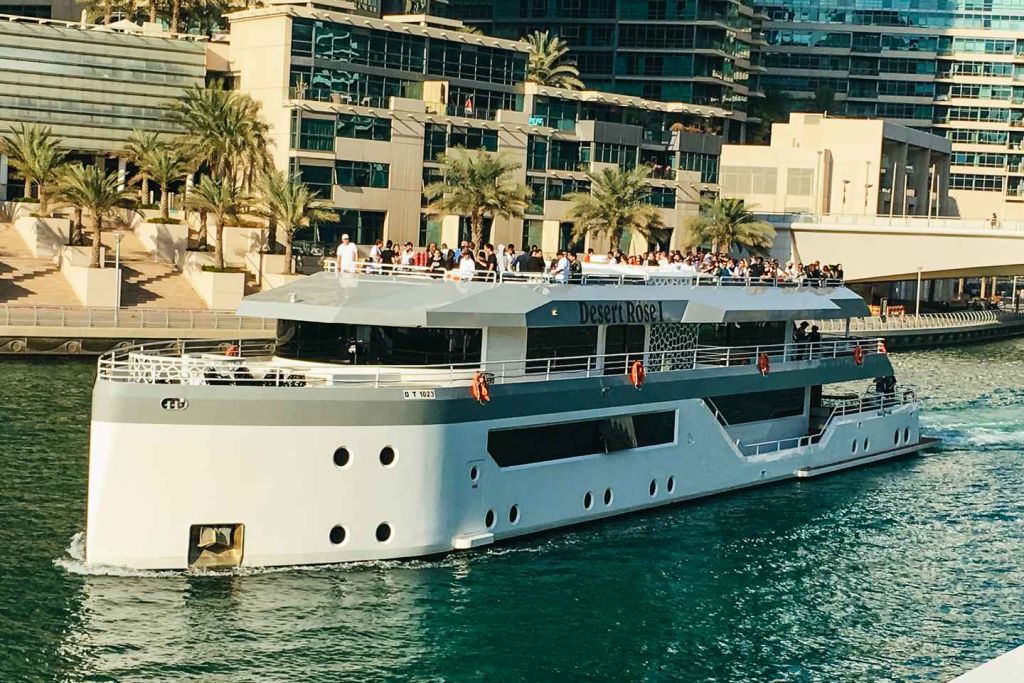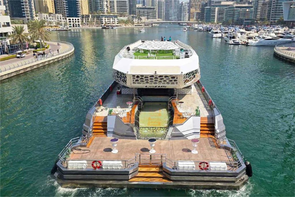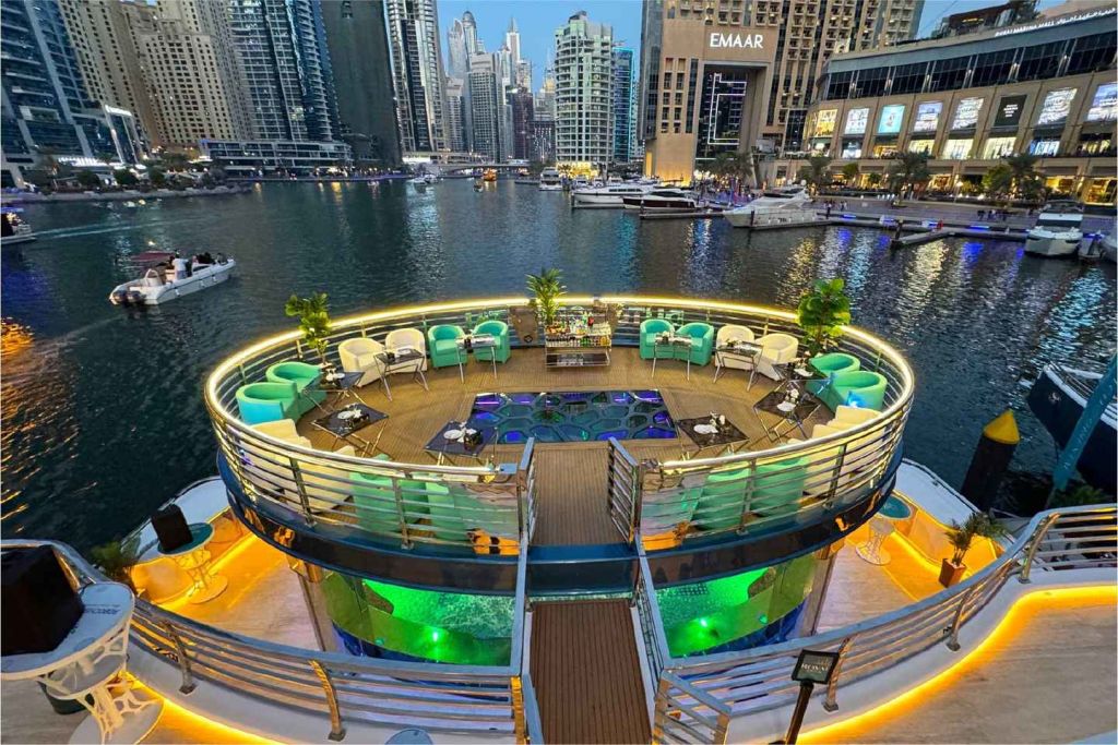 • 두바이의 유명한 두바이 마리나에서 새롭고 독특한 대형 요트 로터스 로얄을 타고 스카이라인과 아틀란티스 호텔, 팜 주메이라의 탁 트인 전망을 감상하며 크루즈를 즐겨보세요.